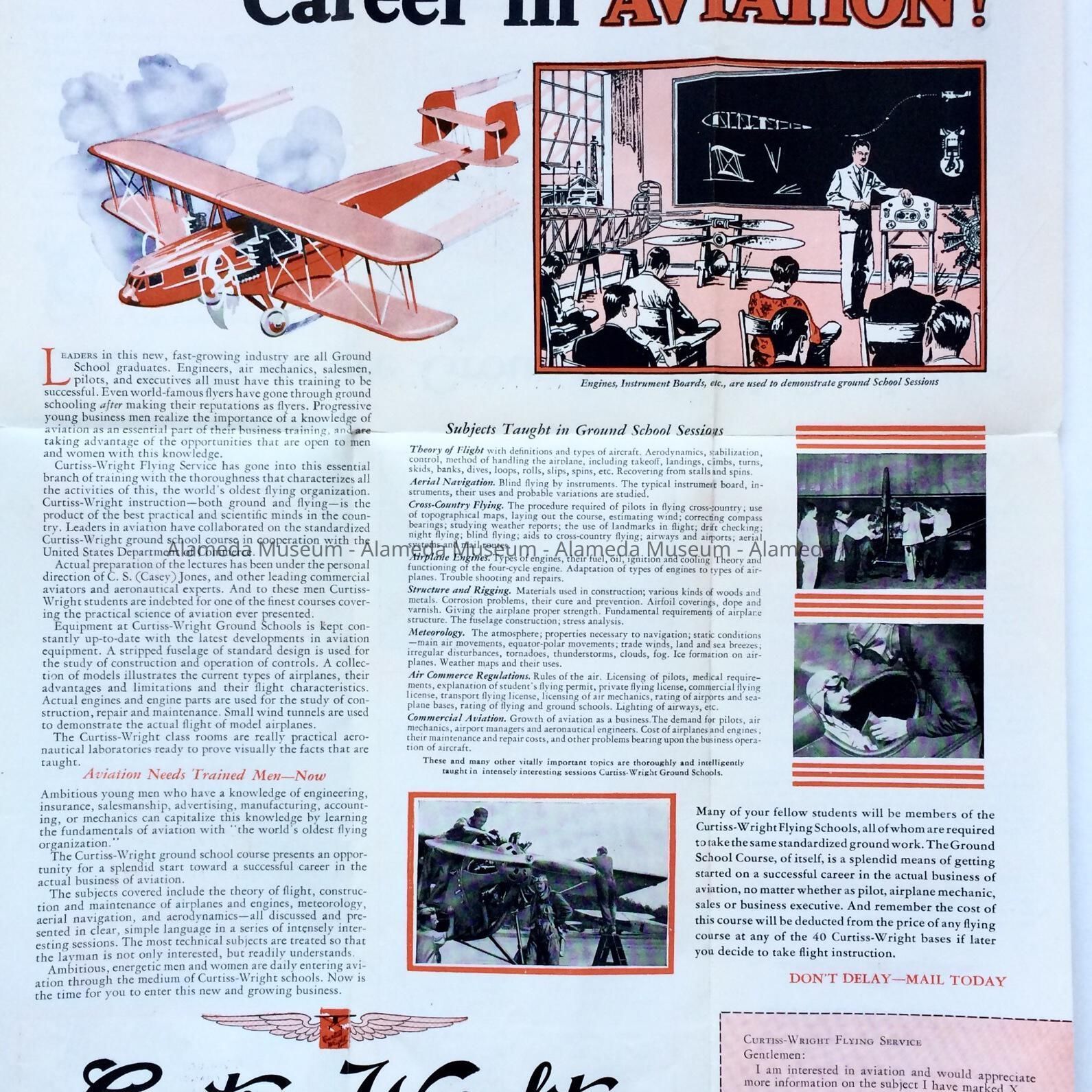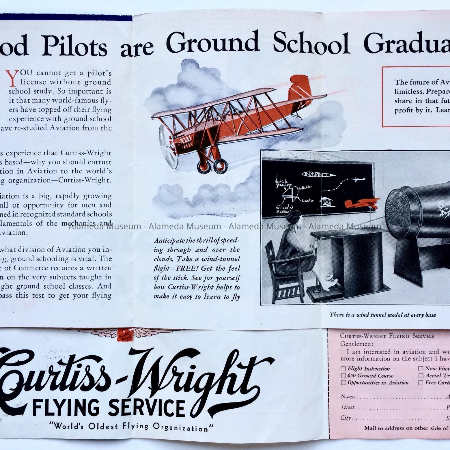 Pamphlet advertising Curtis Wright flight school at Alameda Airport, c. 1930Entry/Object ID