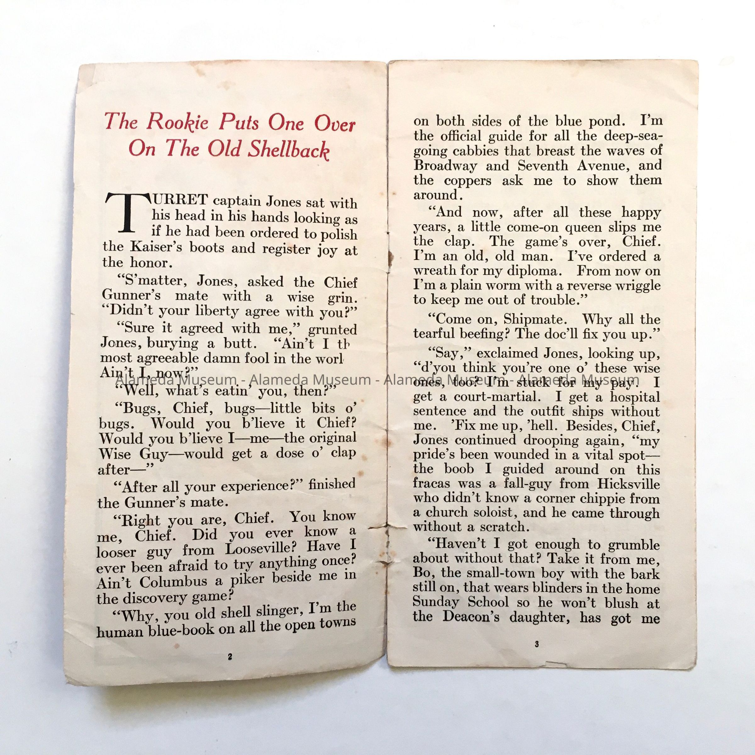 A BOOKLET-STYLE PAMPHLET, WITH ILLUSTRATED COVER. BOLD-PRINTED CAPTION READS, "THE ROOKIE PUTS ONE OVER ON A SHELLBACK."
