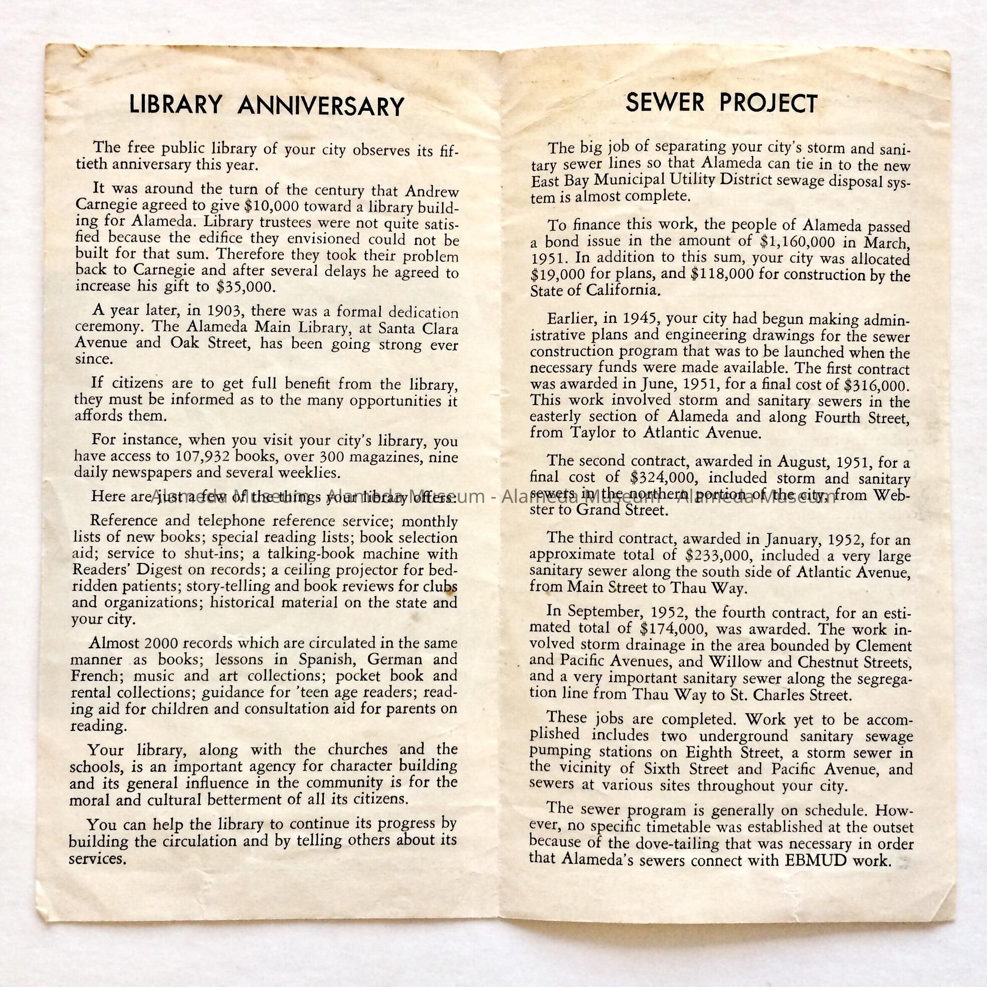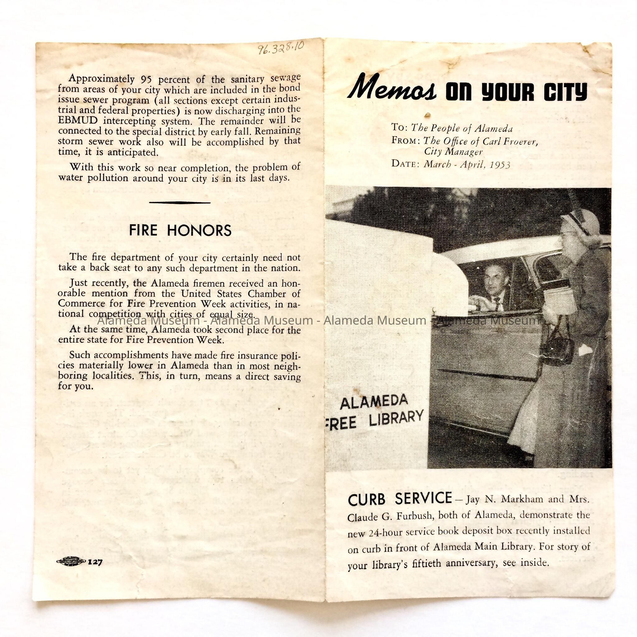 Pamphlet 'Memos on Your City' by office of Carl Forever, City Manager, 1953Entry/Object ID