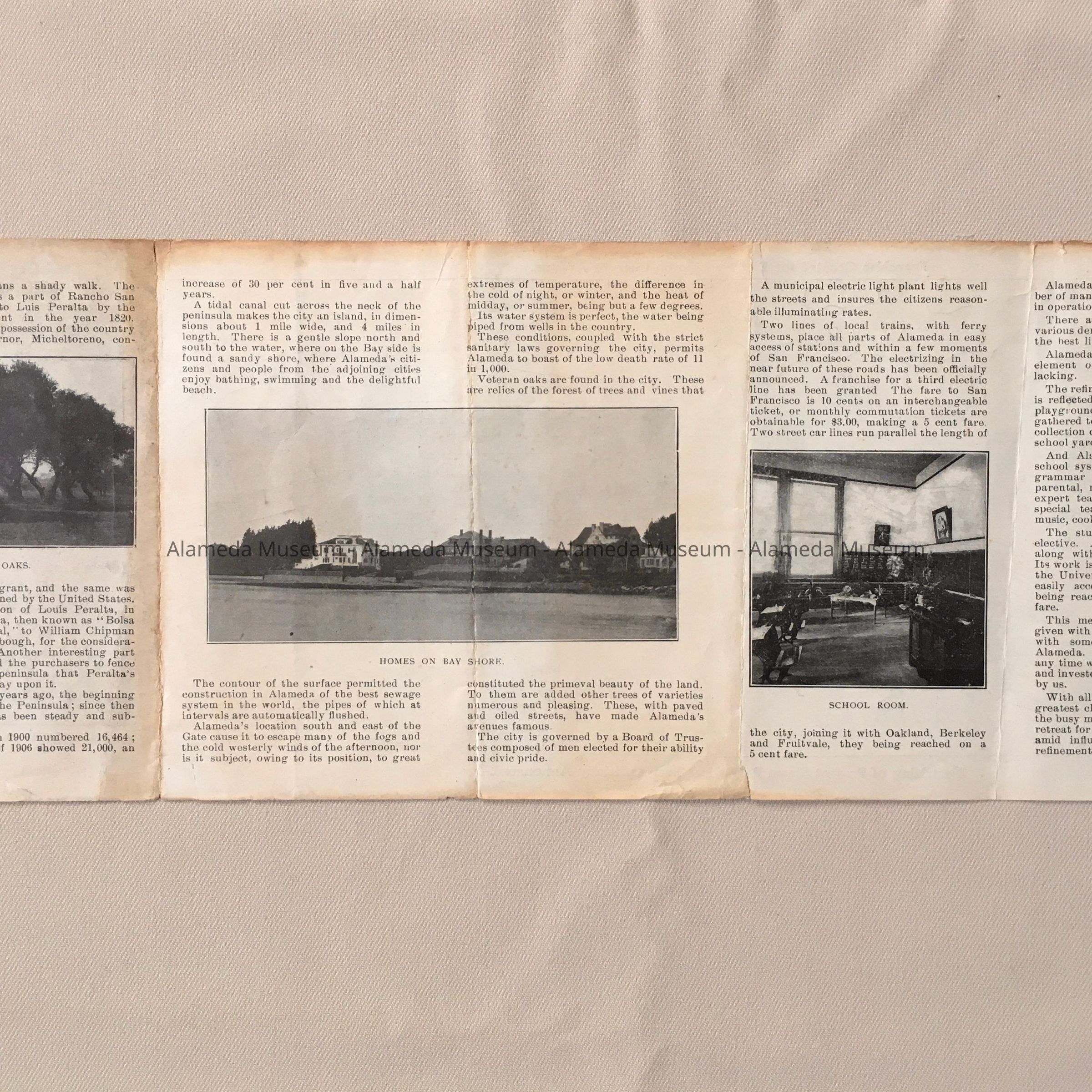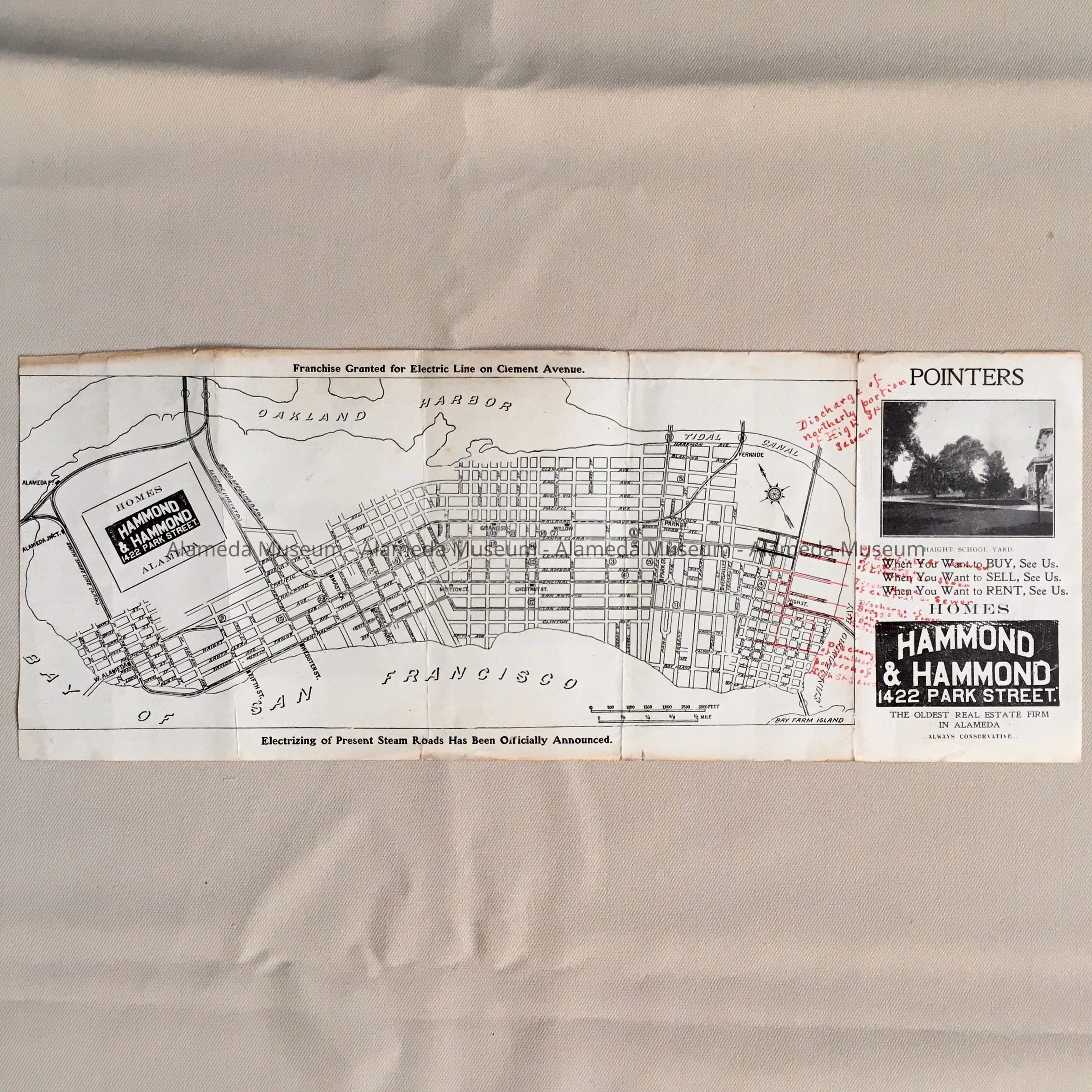History of Object; A pamphlet issued by Hammond & Hammond, 1422 Park Street, a real estate company. This pamphlet includes a map of Alameda.