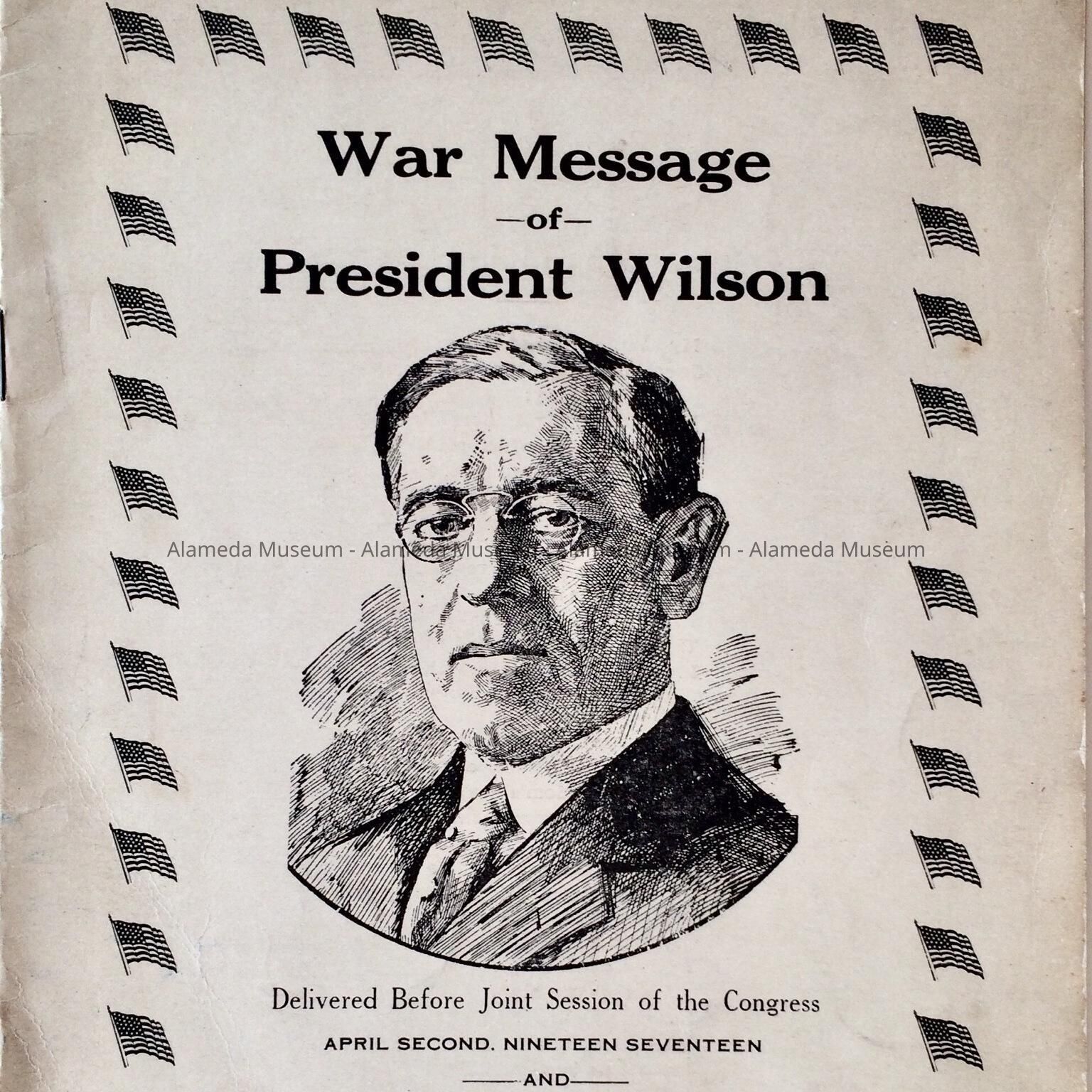 History of Object: War message of Pres. Wilson, delivered before joint session of Congress, April 2nd, 1917, and printed by the Evening Times-Star, Alameda, Calif.