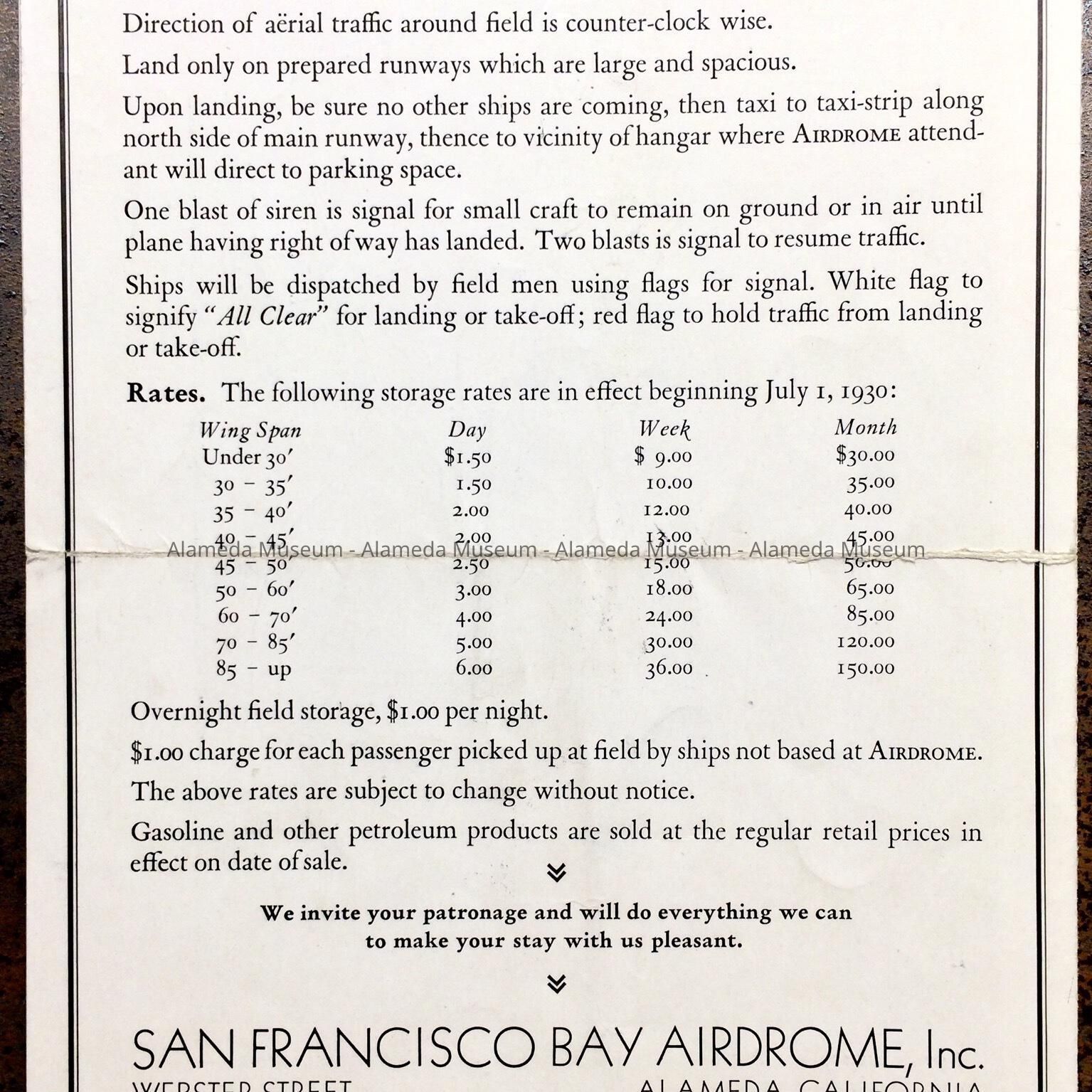 Pamphlets of rates and services at San Francisco Bay Airdrome, c. 1930Entry/Object ID