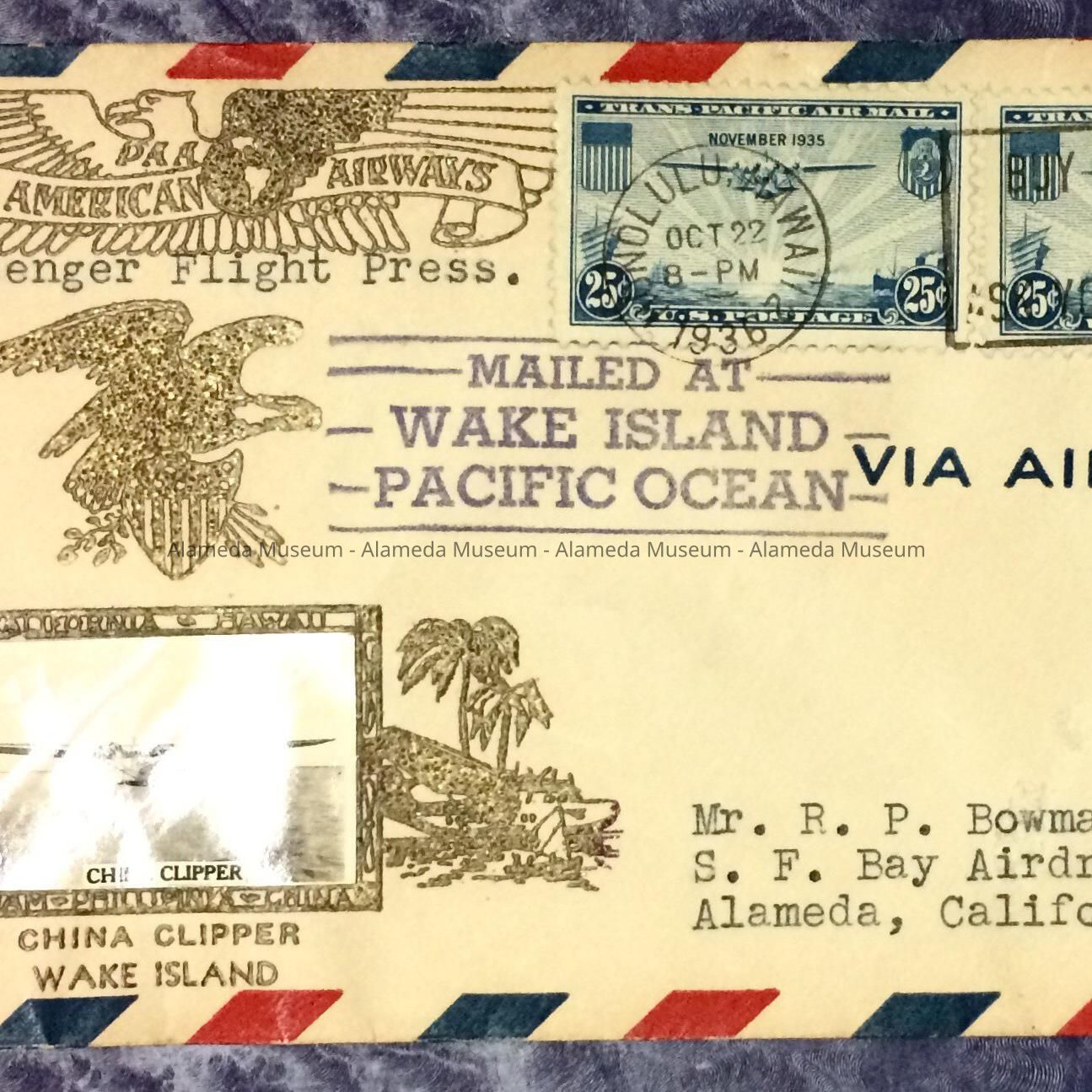 Pan American Airways Air mail envelope sent on first passenger flight from Wake Island to Alameda, 1936Entry/Object ID