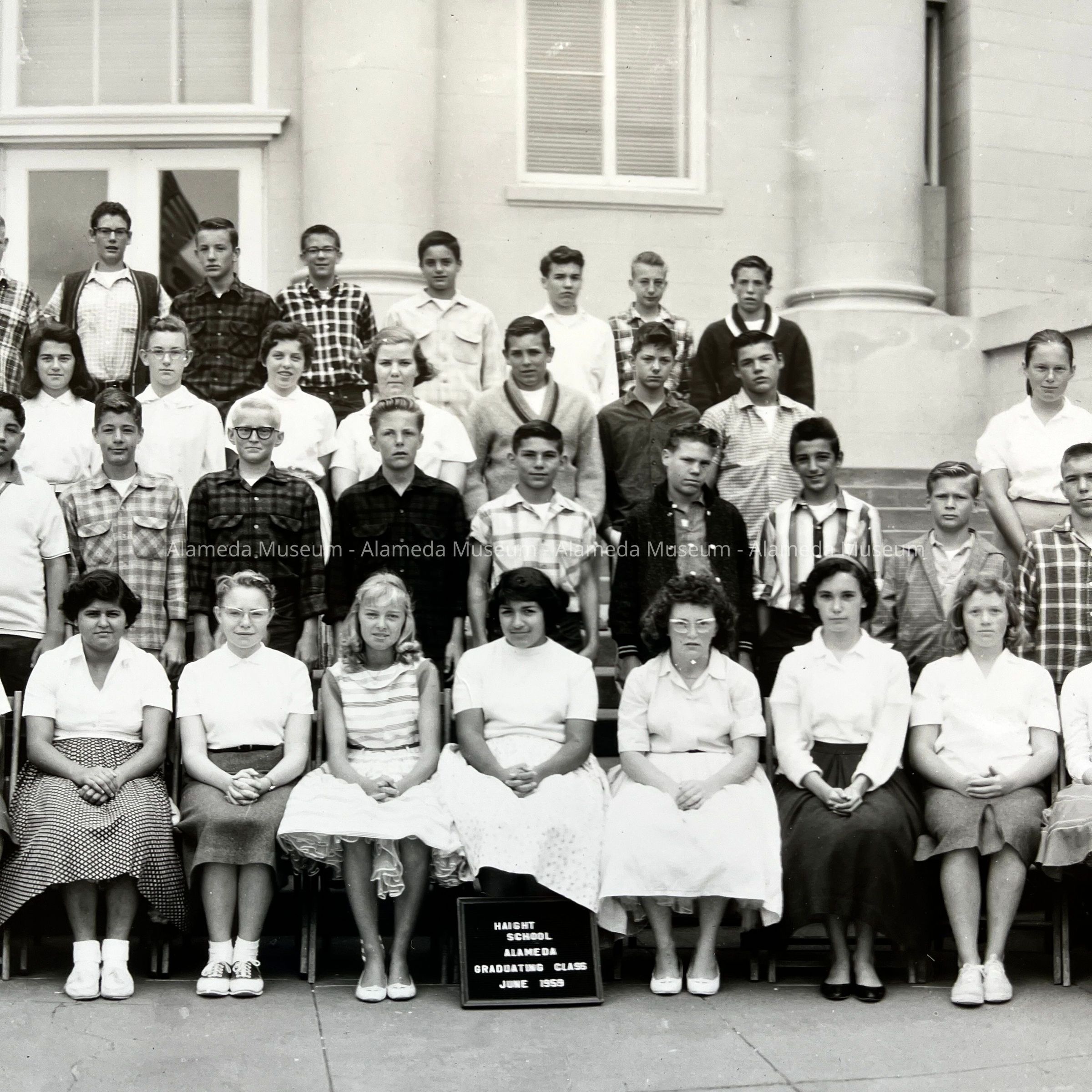 History of Object: Photograph of the graduating class of Haight School, June, 1959. Thomas Fenn was a member of this class.