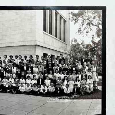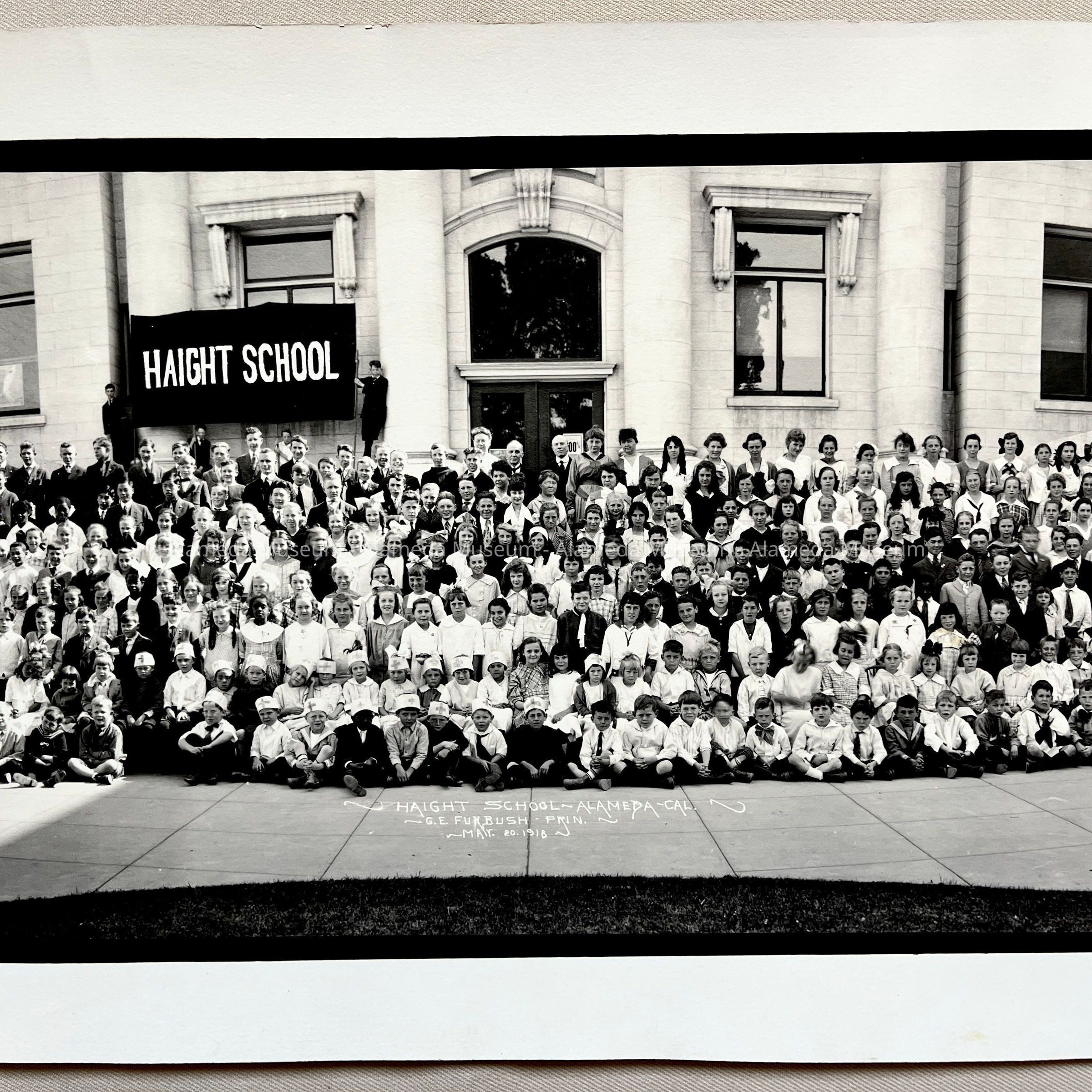 History of Object: A panoramic photographic view of the entire student body and faculty of Haight School taken in 1918 at the entrance to the school.
