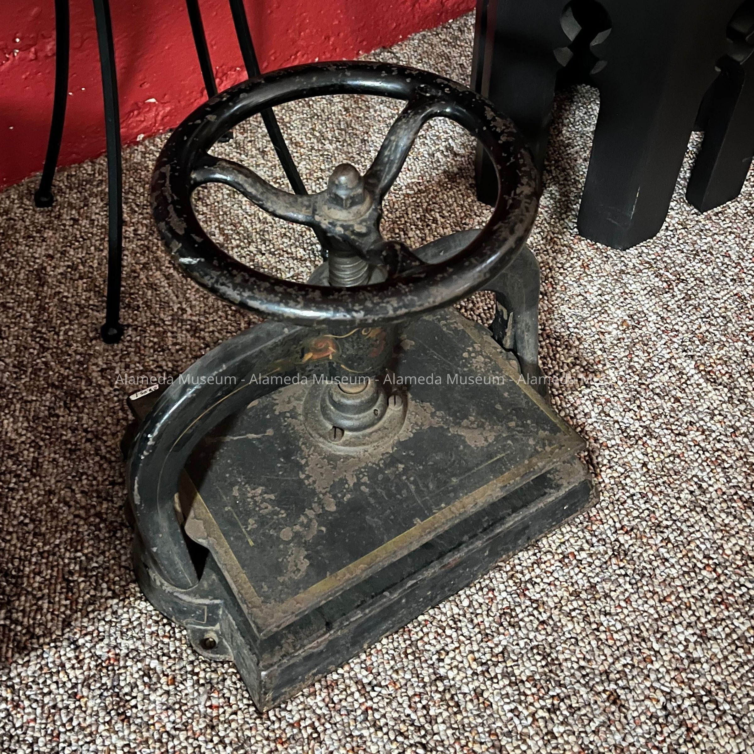 History of Object: A paper press used by the Alameda Fire Department in the late 19th Century. From the collection of the late Archie Waterbury who was a retired Assistant Fire Chief for the City of Alameda.