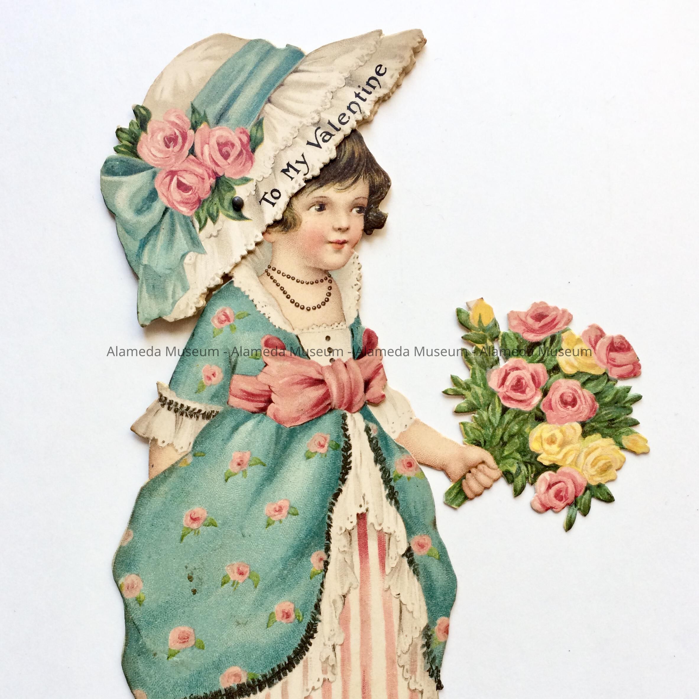 Paper Valentine of girl with caption on hat: To My Valentine, c. 1920sEntry/Object ID