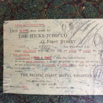 History of Object: Guest register for the Park Hotel, Park Street & Encinal Avenue. The building has been demolished and replaced by the present main branch of the Alameda Fire Department.