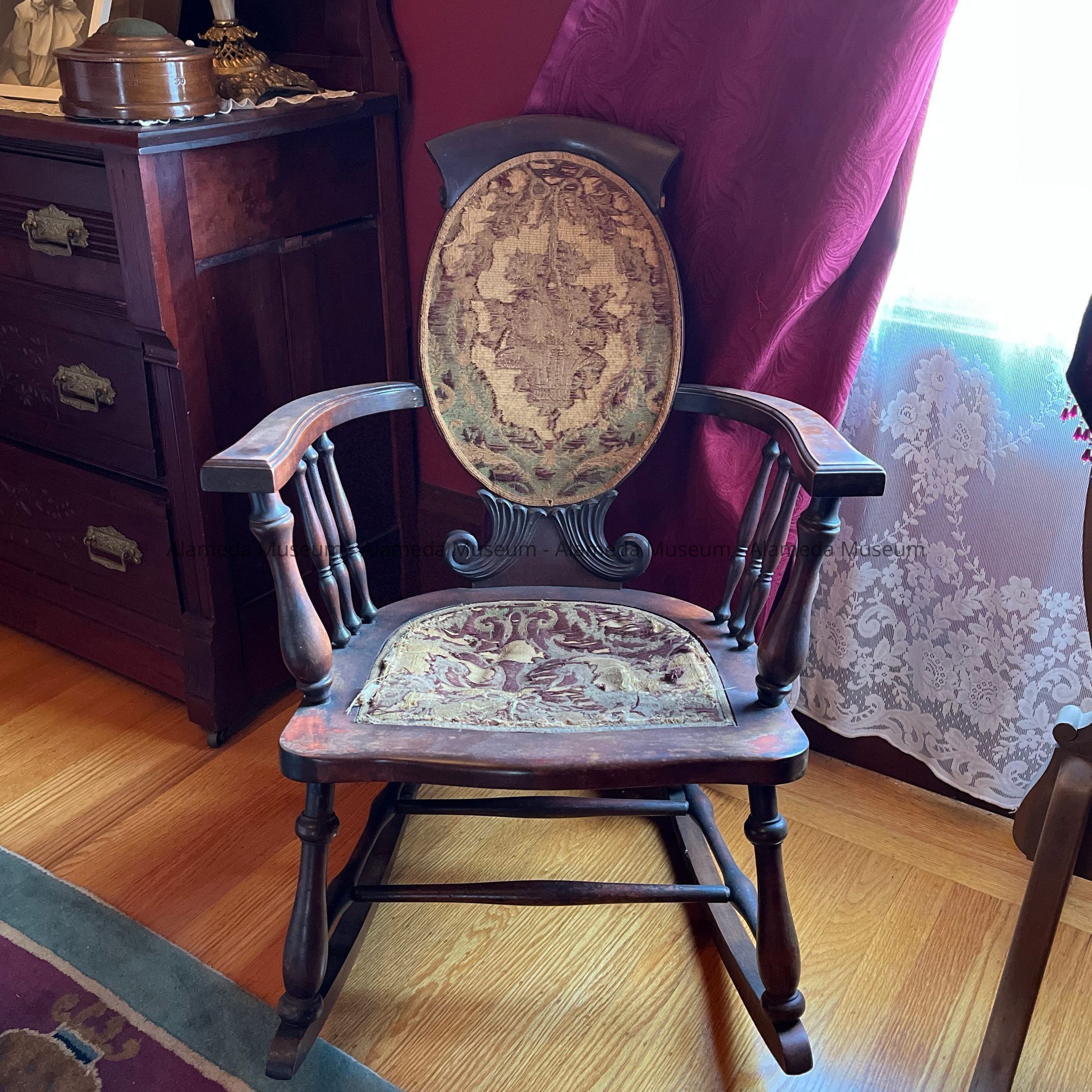 Parlor rocking chair with tapestry upholstery of the Fenn family, c. 1900Entry/Object ID