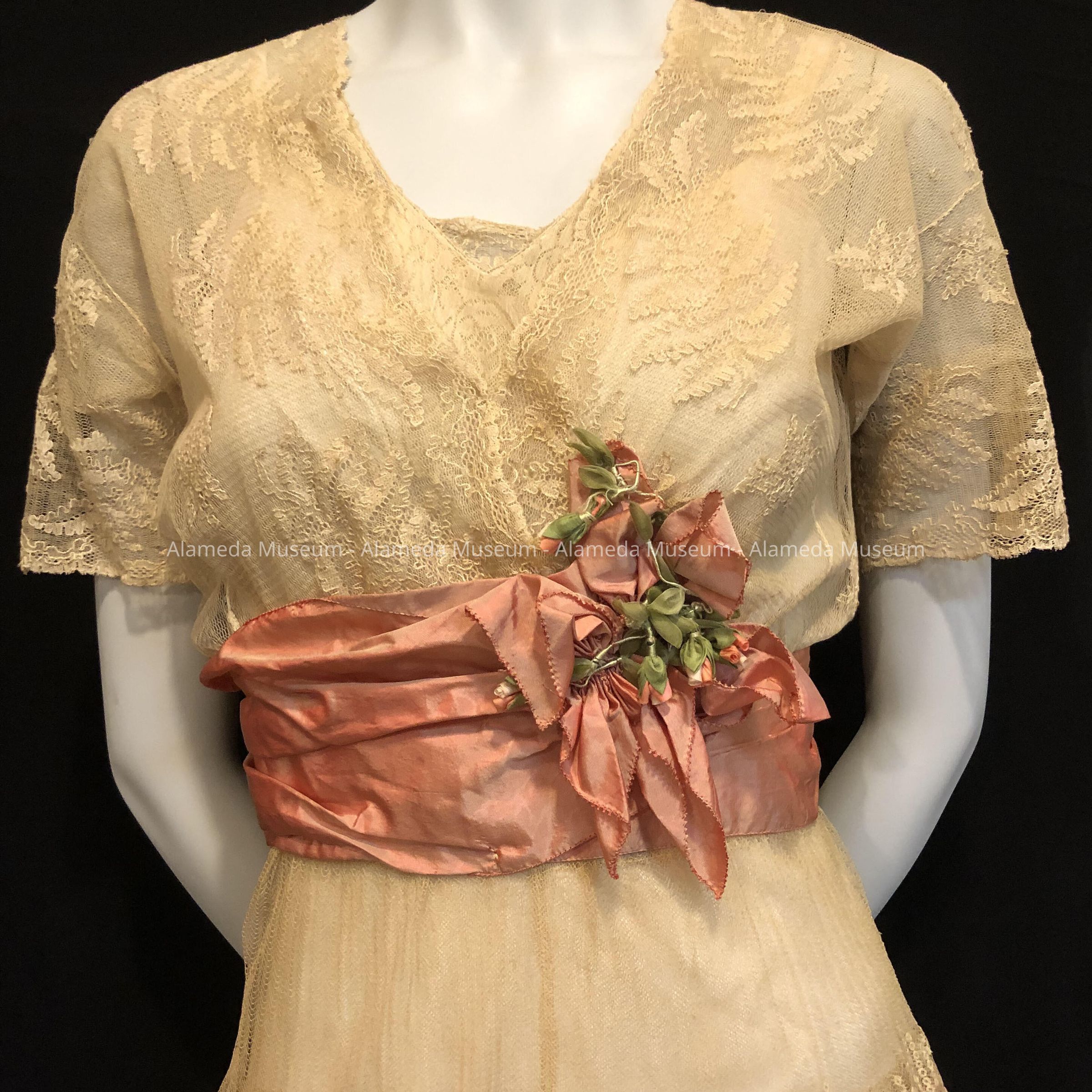 Party Dress of pink with ecru lace of one of the Haslett daughters, c. 1912Entry/Object ID