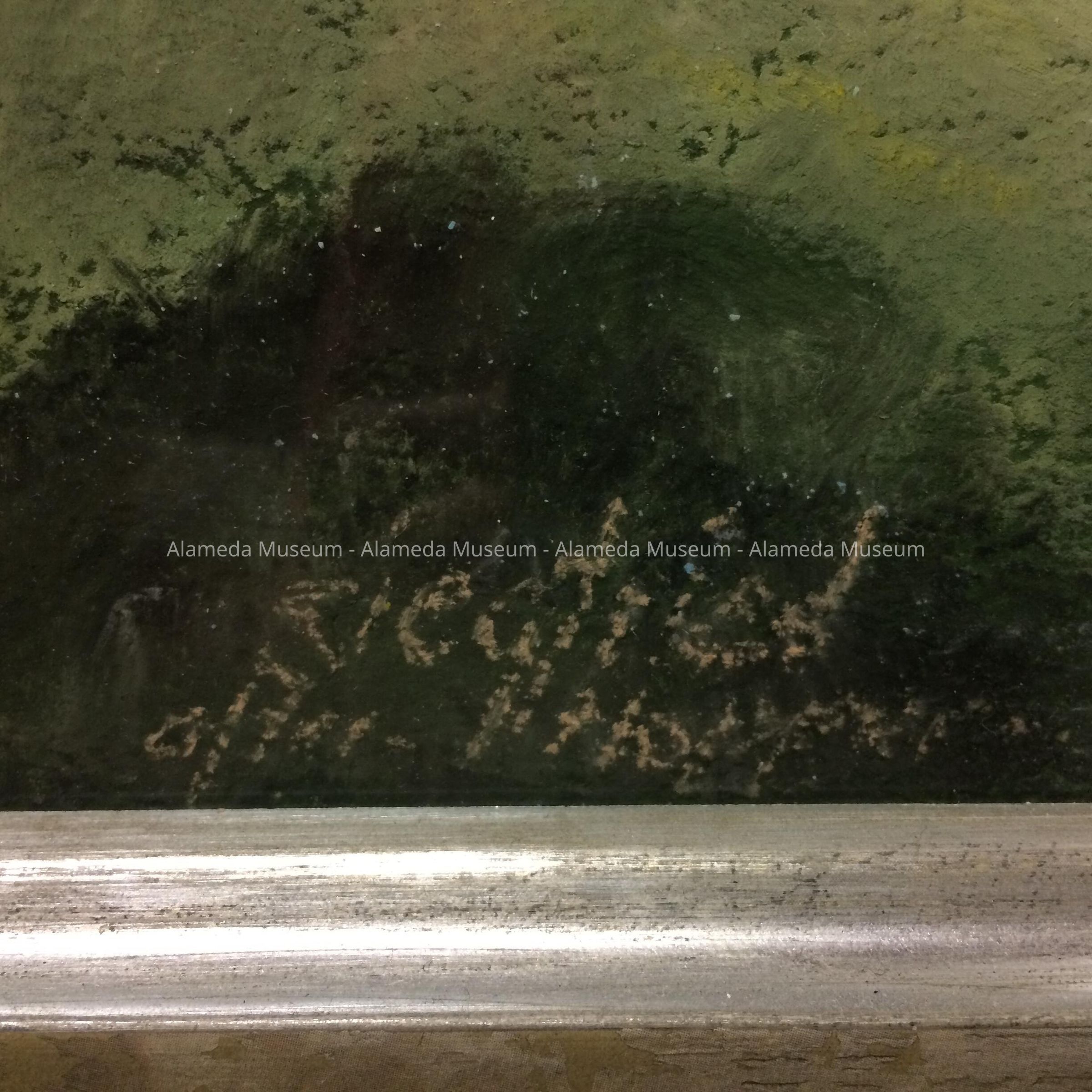 History of Object: This scene is unusual subject matter for the artist, Edwin Siegfried. It was originally owned by Chester & Helga Fenn, neighbors of Mr. Siegfried who resided at 2044 Alameda Avenue. The artist was a member of a pioneer Alameda family, self-taught, and a prolific pastel artist usually of nature scenes rather than of human constructions.