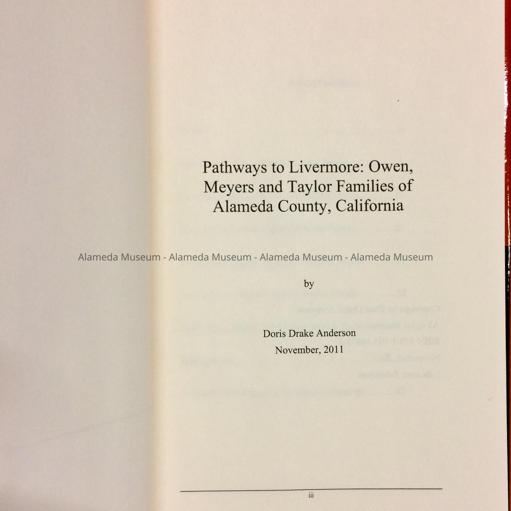 'Pathways to Livermore, Owen Meyers and Taylor families', by Dorie Drake Anderson, 2011Entry/Object ID