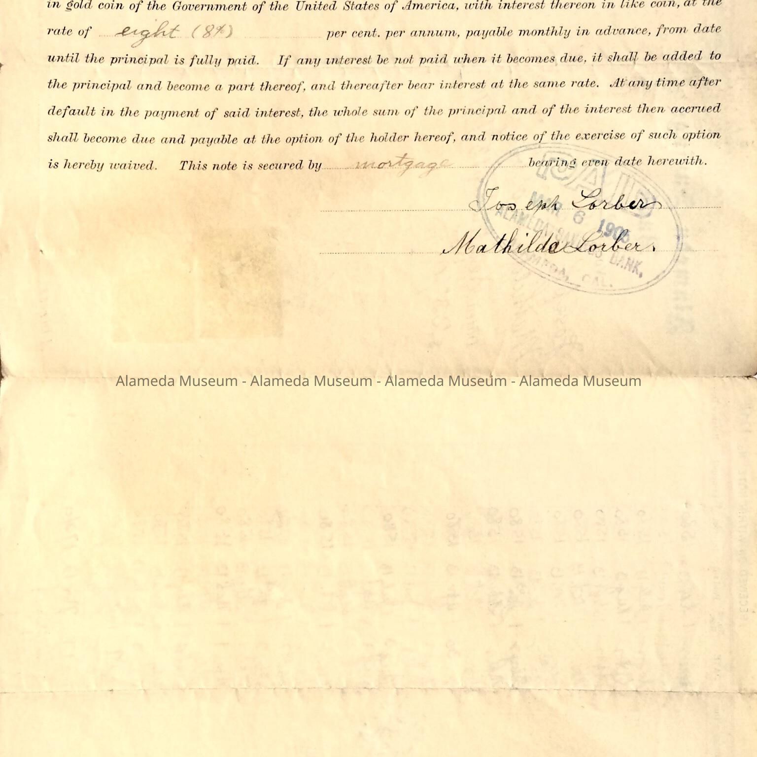 Payment form for Joseph and Matilda Lorber, Alameda Savings Bank, 1899Entry/Object ID
