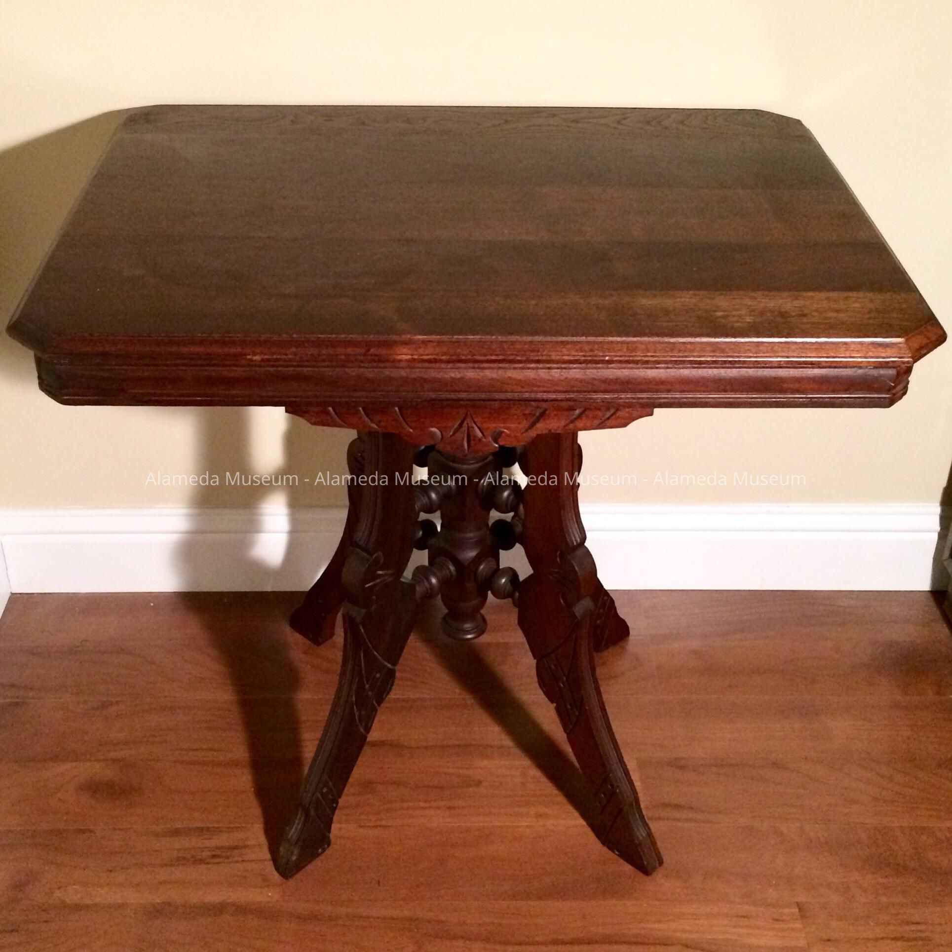 HISTORY OF OBJECT: PARLOR OR LAMP TABLE FROM THE PERKINS RESIDENCE AT 417-19 TAYLOR AVENUE, ALAMEDA.