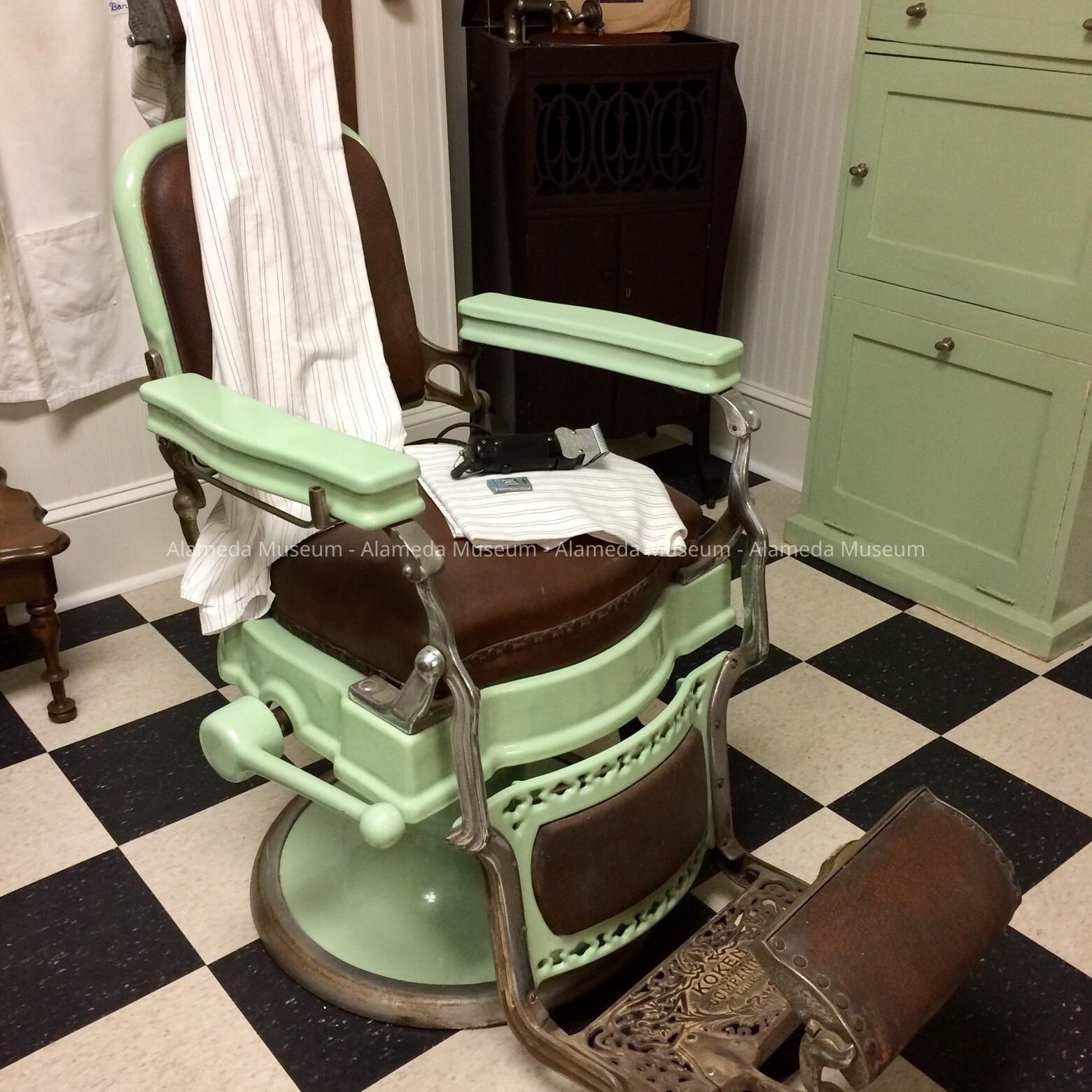 ONE OF A PAIR OF REVOLVING BARBER CHAIRS REMOVED FROM FRANK'S BARBER SHOP @ 2055 LINCOLN AVENUE, ALAMEDA, CA.
