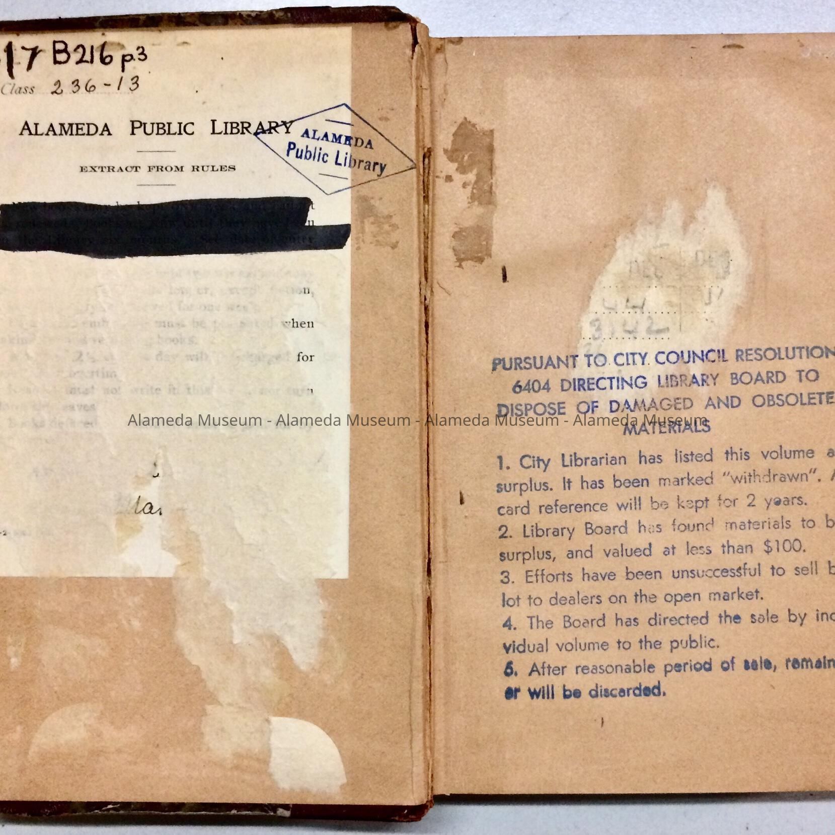 A PUBLICATION THAT WAS PART OF AN EARLY COLLECTION OF BOOKS OWNED BY THE ALAMEDA FREE PUBLIC LIBRARY AND DEACCESSIONED BY THE LIBRARY (AS DAMAGED OR OBSOLETE).