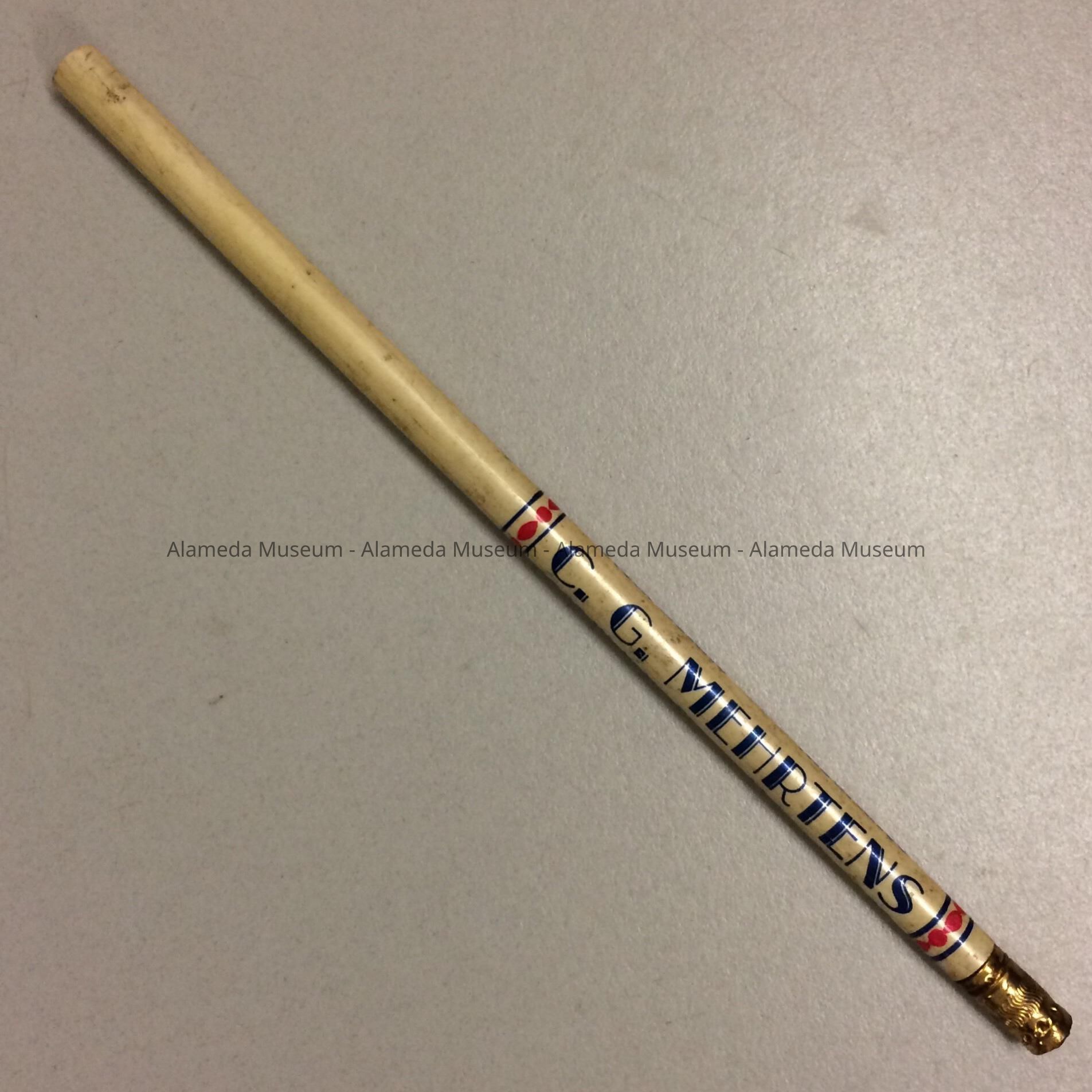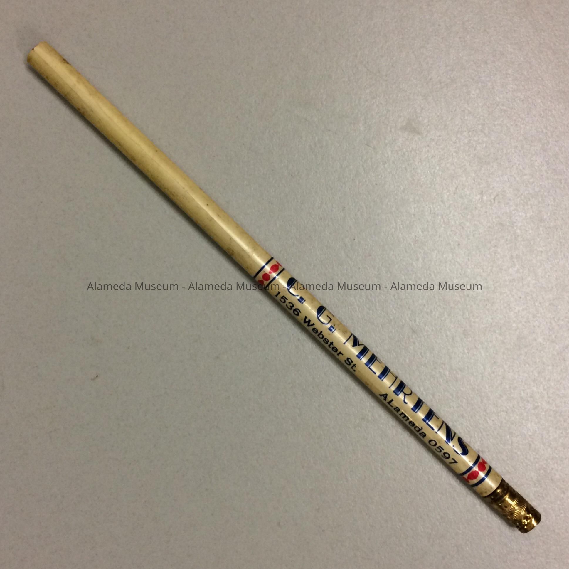 History of Object: A pencil advertising C. G. Mehrtens Real Estate and Insurance Co., located at 1536 Webster Street, Alameda.