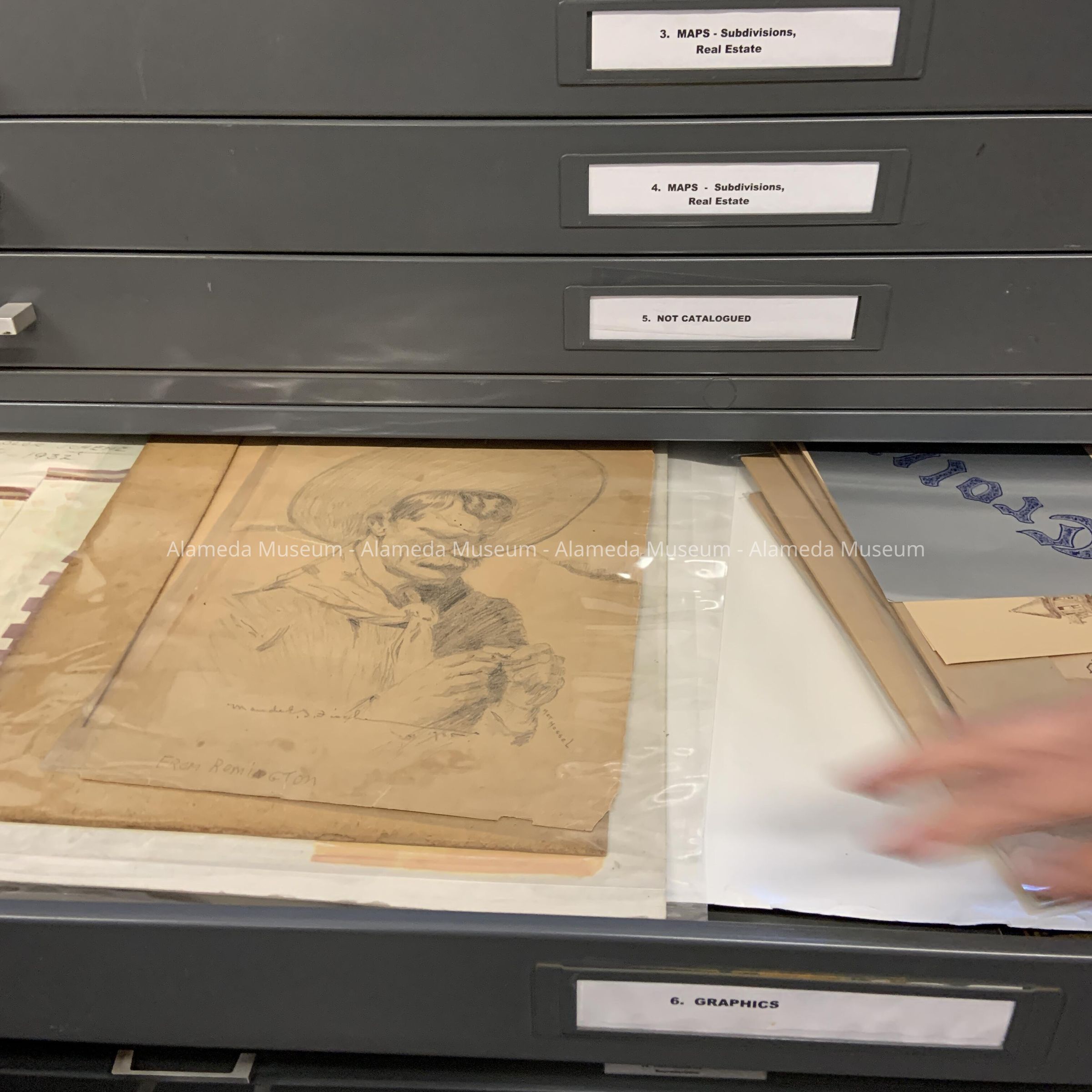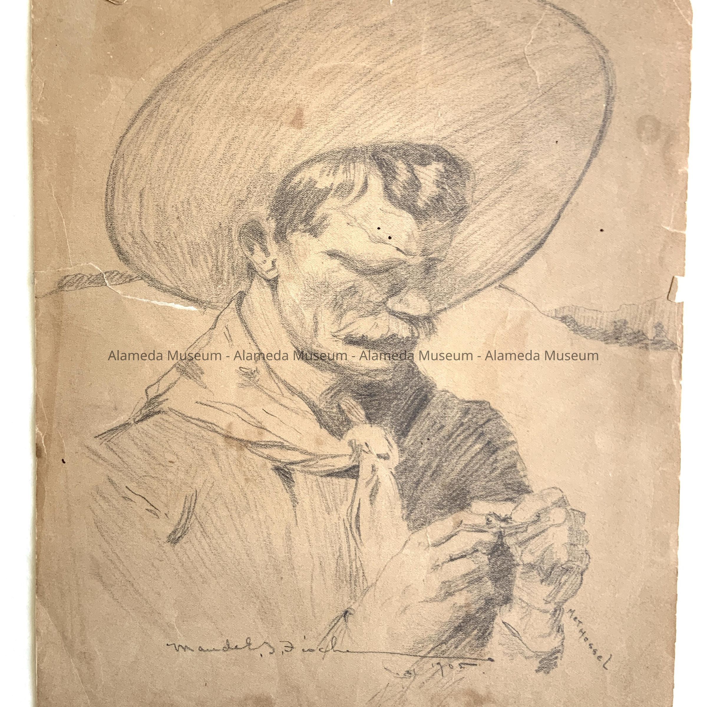 History of Object: Pencil sketch drawn by the artist Maude F. Fischer. Member of a pioneer Alameda family, she worked in several mediums, including china painting (90.1.22 a & b).