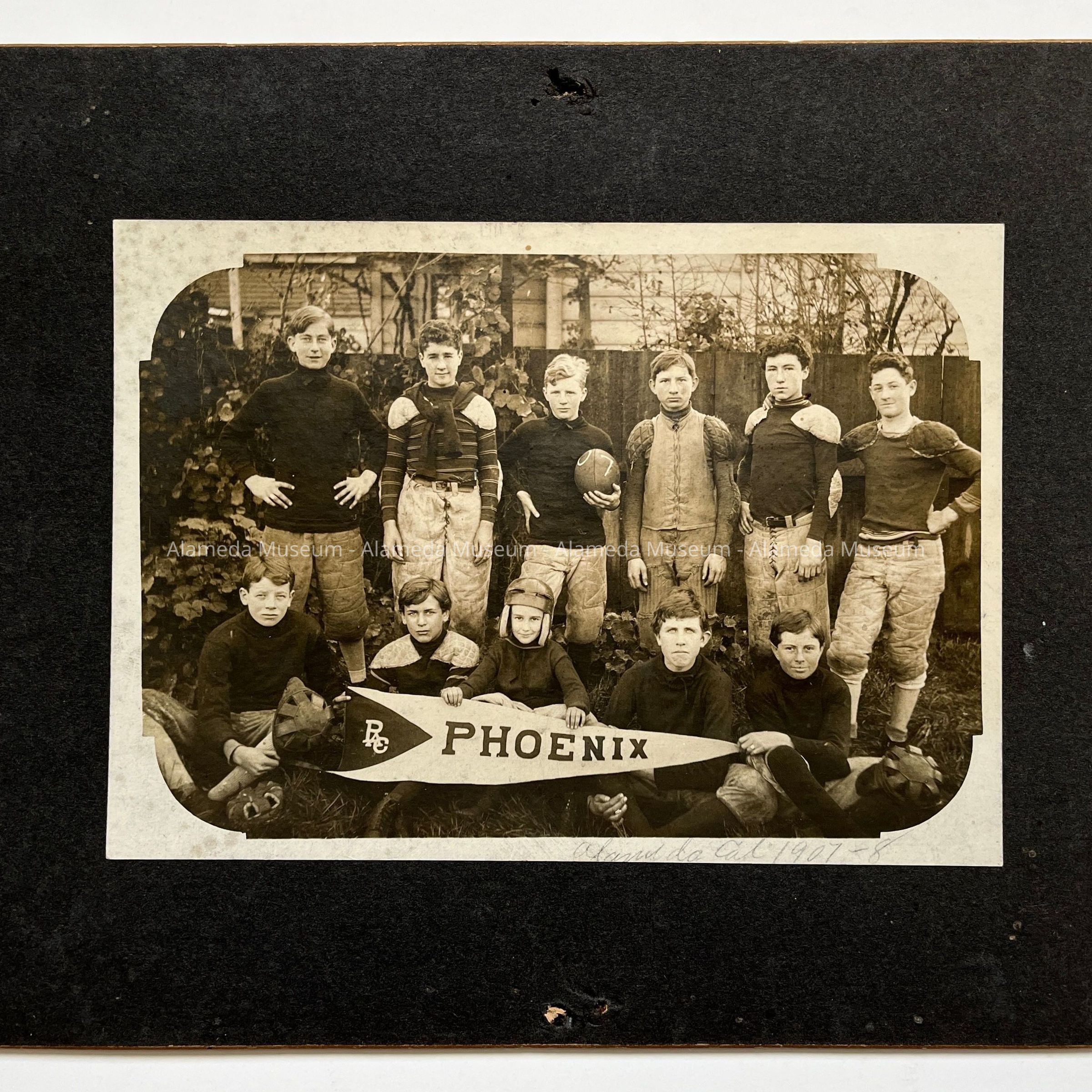 History of Object: Photo of the Phoenix Athletic Club (group of young boys), Alameda, California. Dated 1907.