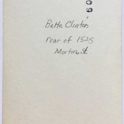Photo (2) of Bette Clinton in the rear yard of 1525 Morton Str., c. 1940sEntry/Object ID