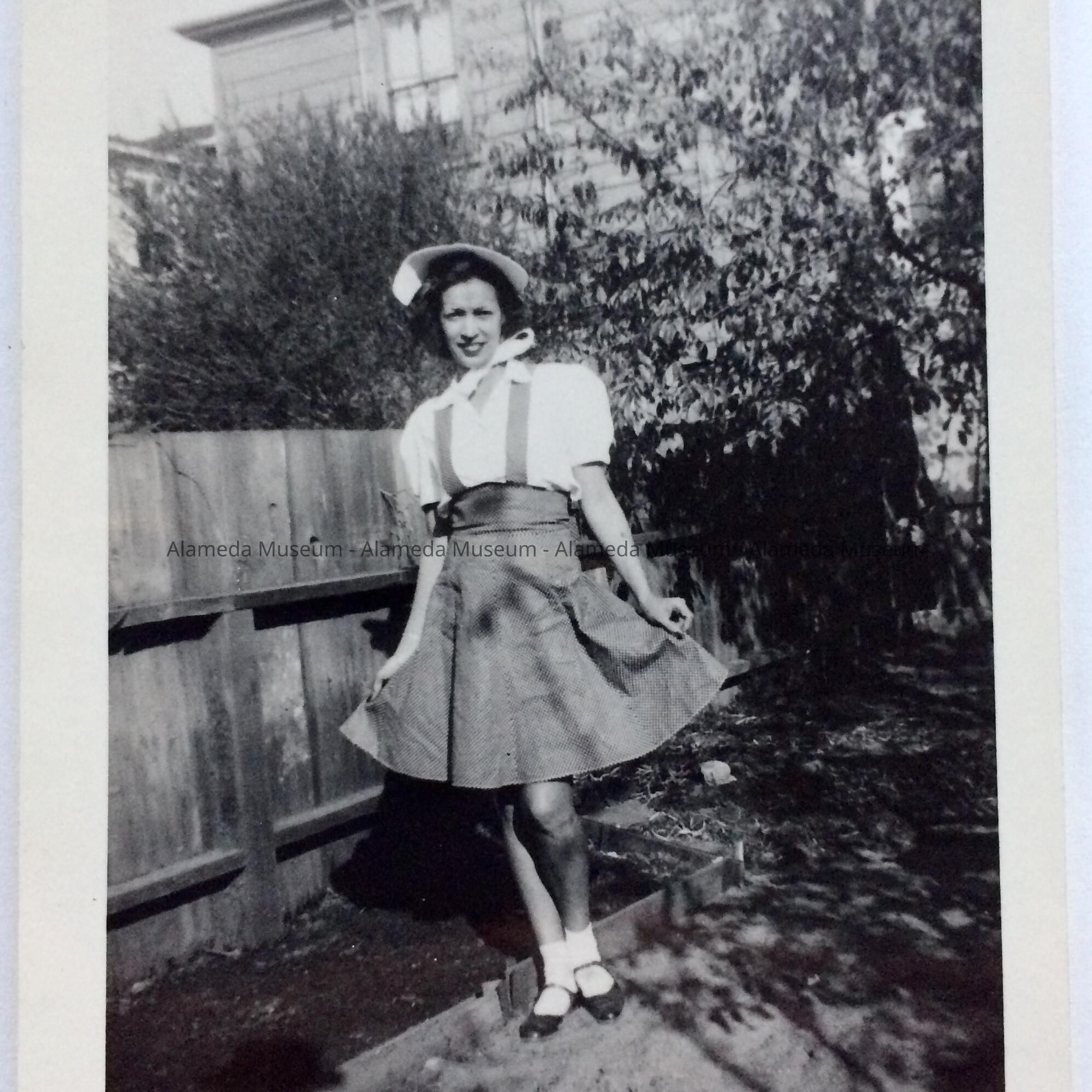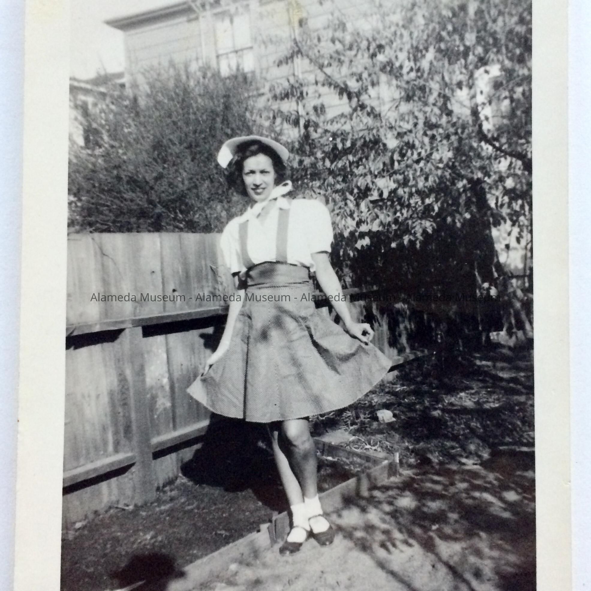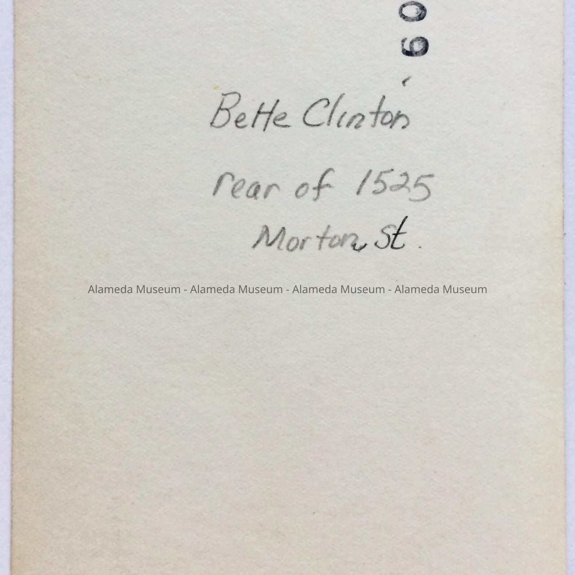 History of Object: Photograph of Bette Clinton taken in the rear yard of 1525 Morton St. She was a member of an early African-American family of Alameda.