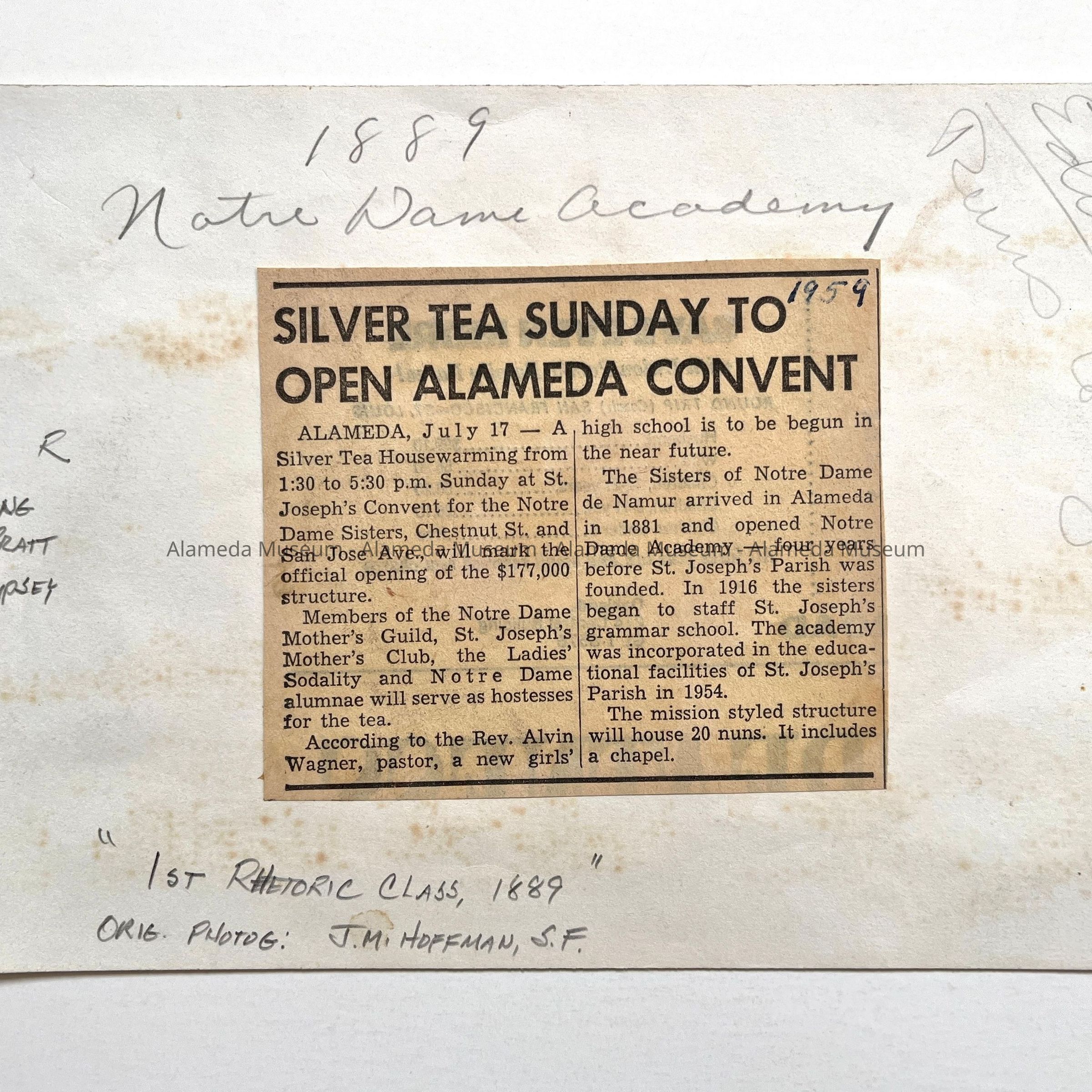 Photo '1st Rhetoric Class', Notre Dame Academy, 1889Entry/Object ID