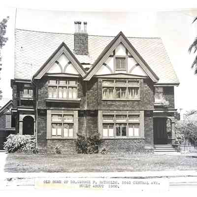 Photograph of 2045 Central Avenue, home of Dr. George P. Reynolds, shortly before demolition. Henry H. Myers was the architect.