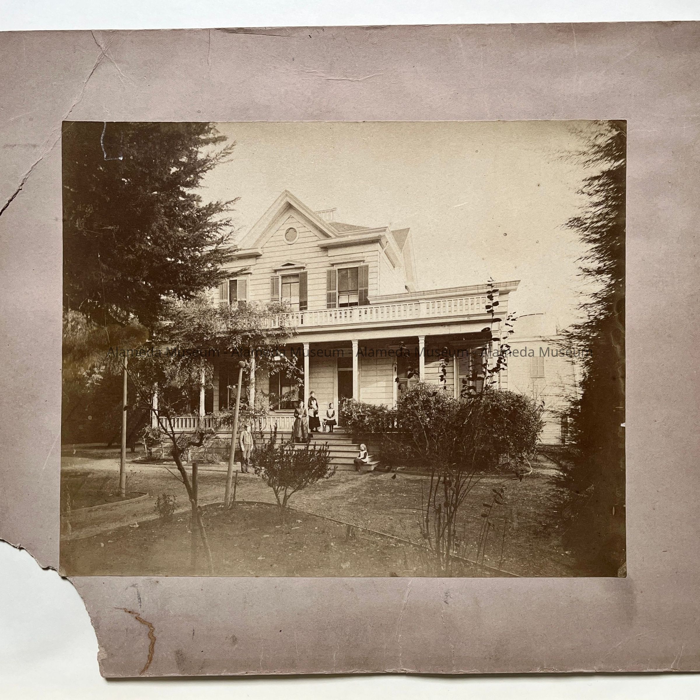 Description: Sepia tinted photograph with off-white mat. On the reverse side rubber stamped is the photographer's identification "Hoffman Bros, 310 Third St. Oakland".