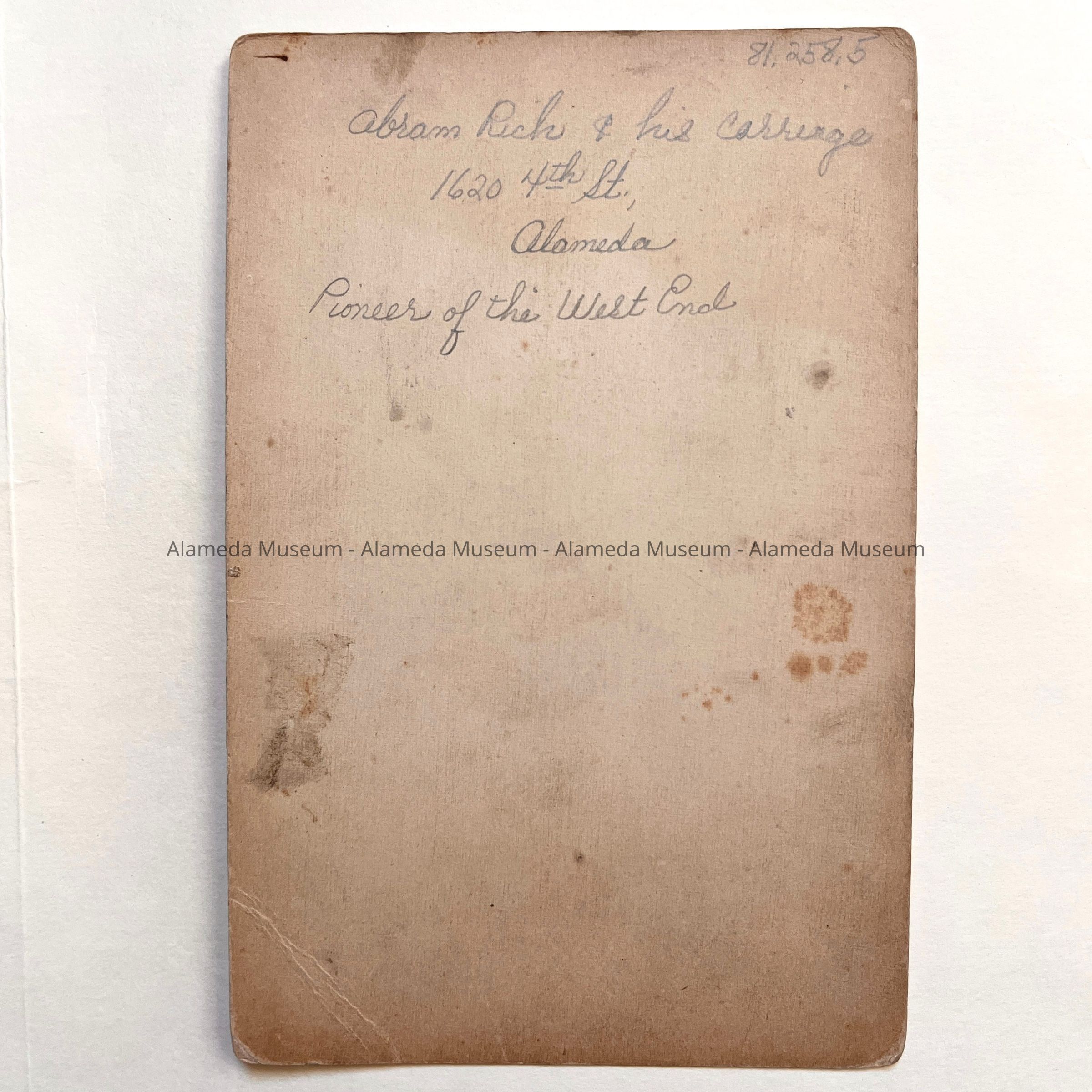 History of Object: Abram Rich and his carriage, 1620 4th Street, Alameda.