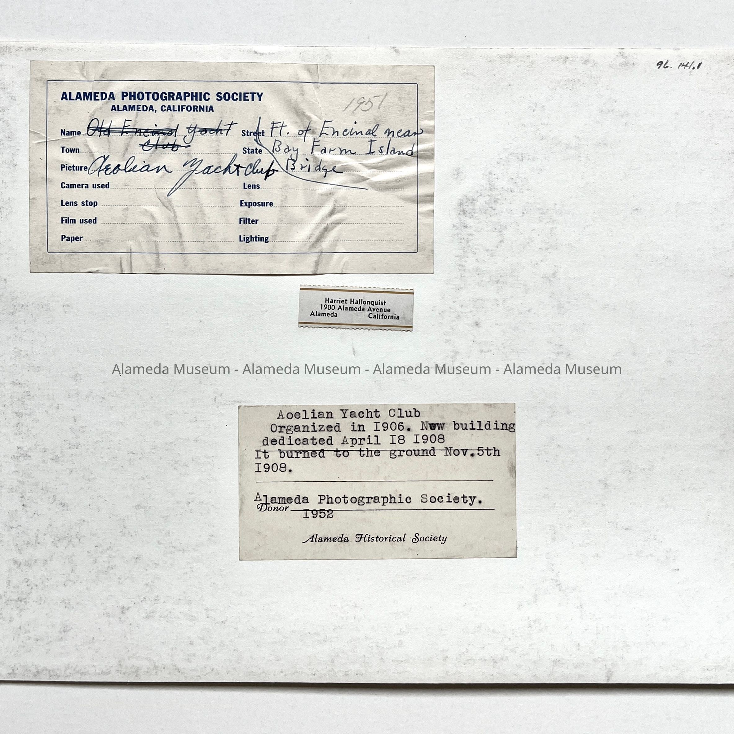Acquired from: Alameda Photographic Society (1952)