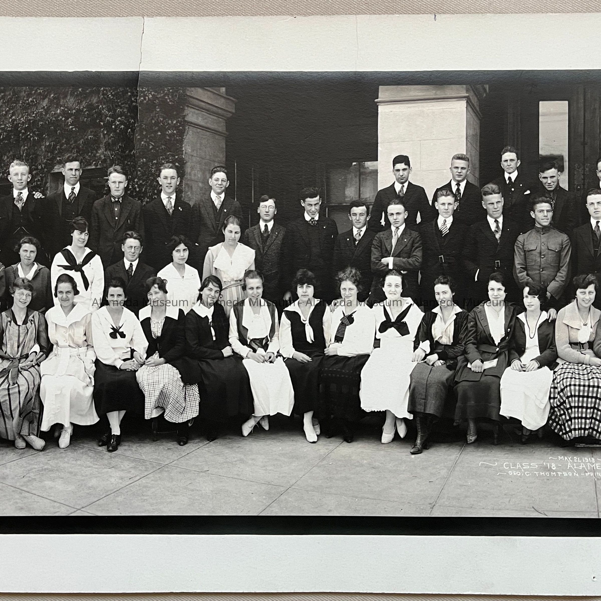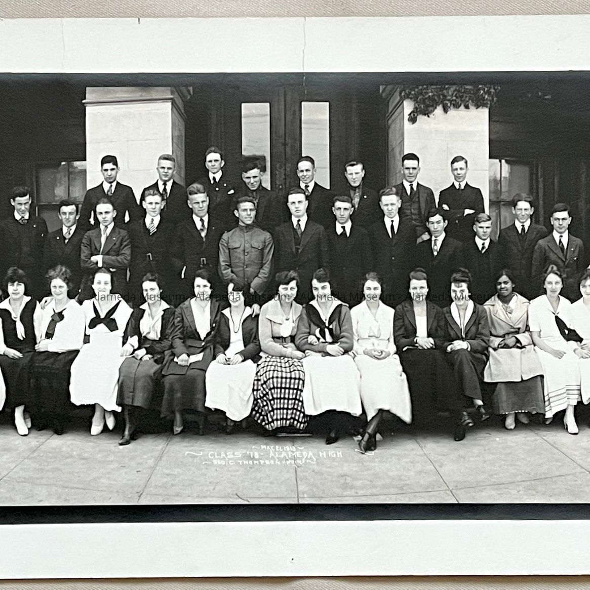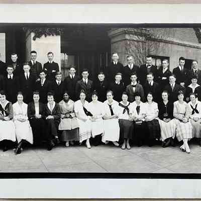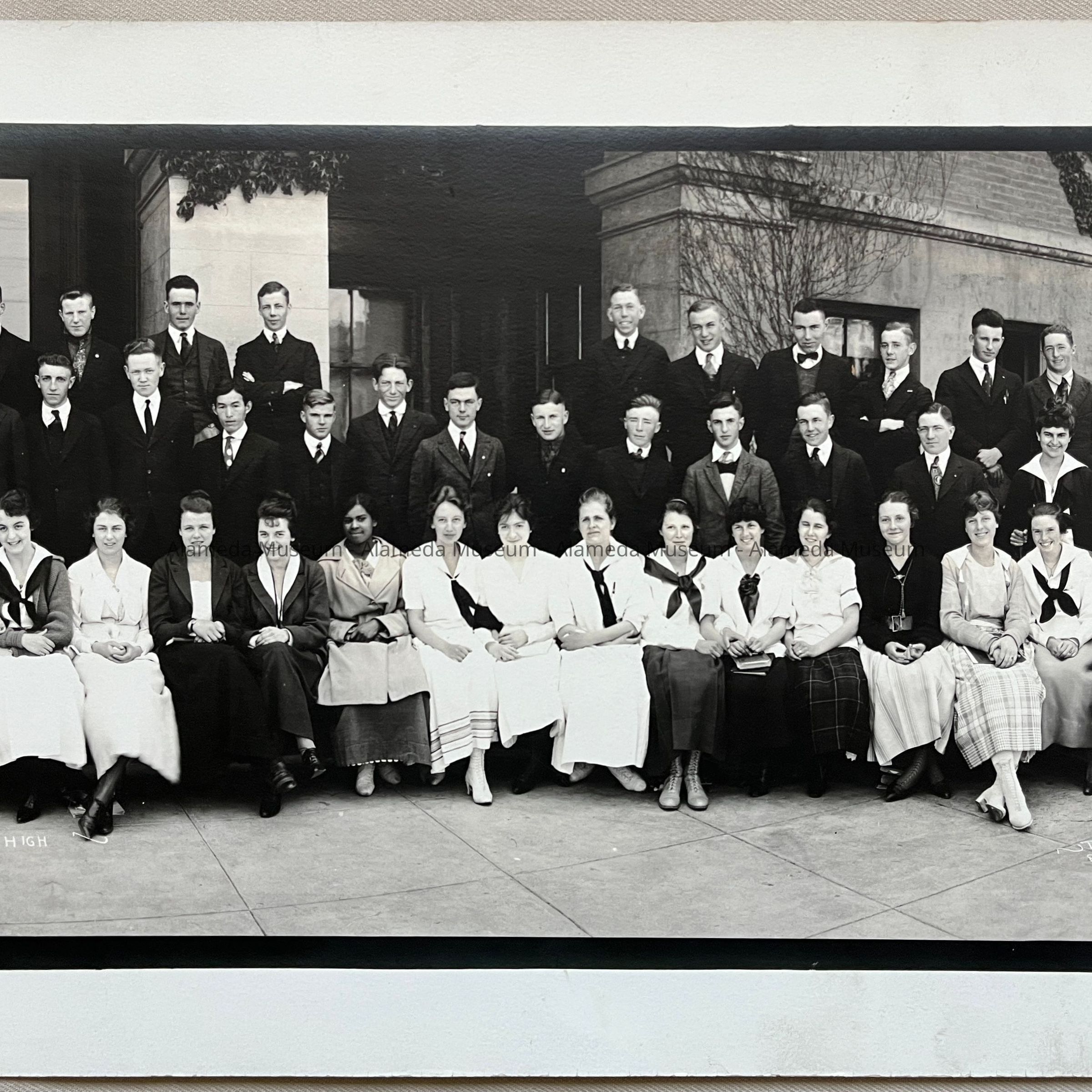 Photo Alameda High School Class of 1918 posed in front of the school, 1918Entry/Object ID