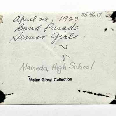 History of Object: Photo depicting senior girls, Alameda High School, April 26, 1923 participating in a Bond Parade for the construction of a new high school.