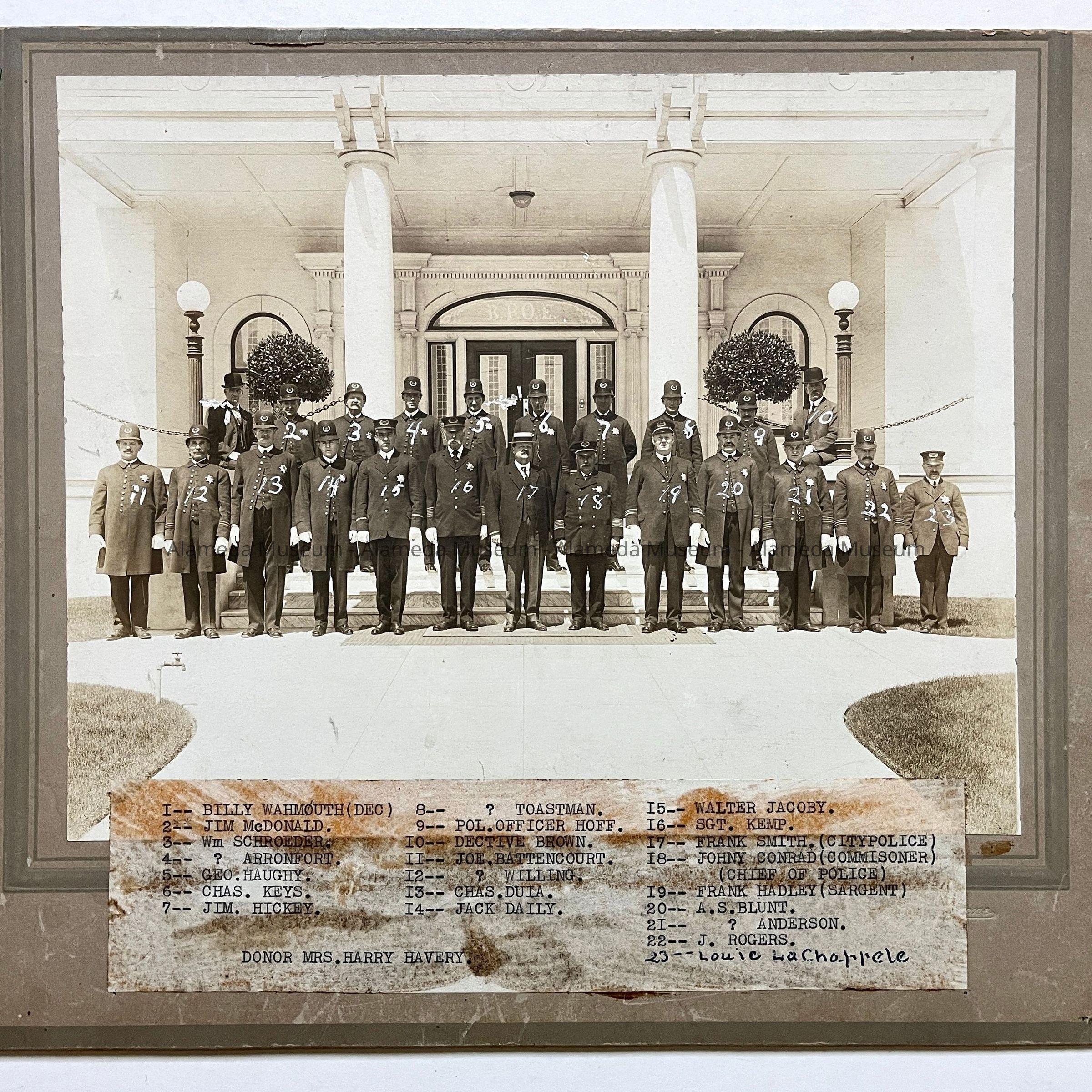 History of Object: Members of the Alameda Police Department posed on the steps of the Alameda Elks Club.