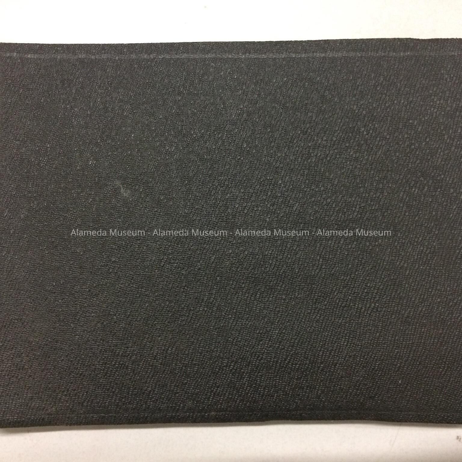 Photograph Album, black-colored w/incised leather cover. No title. Black-colored interior photographic mounting paper. Black and white photographs, with hand-printed captions.