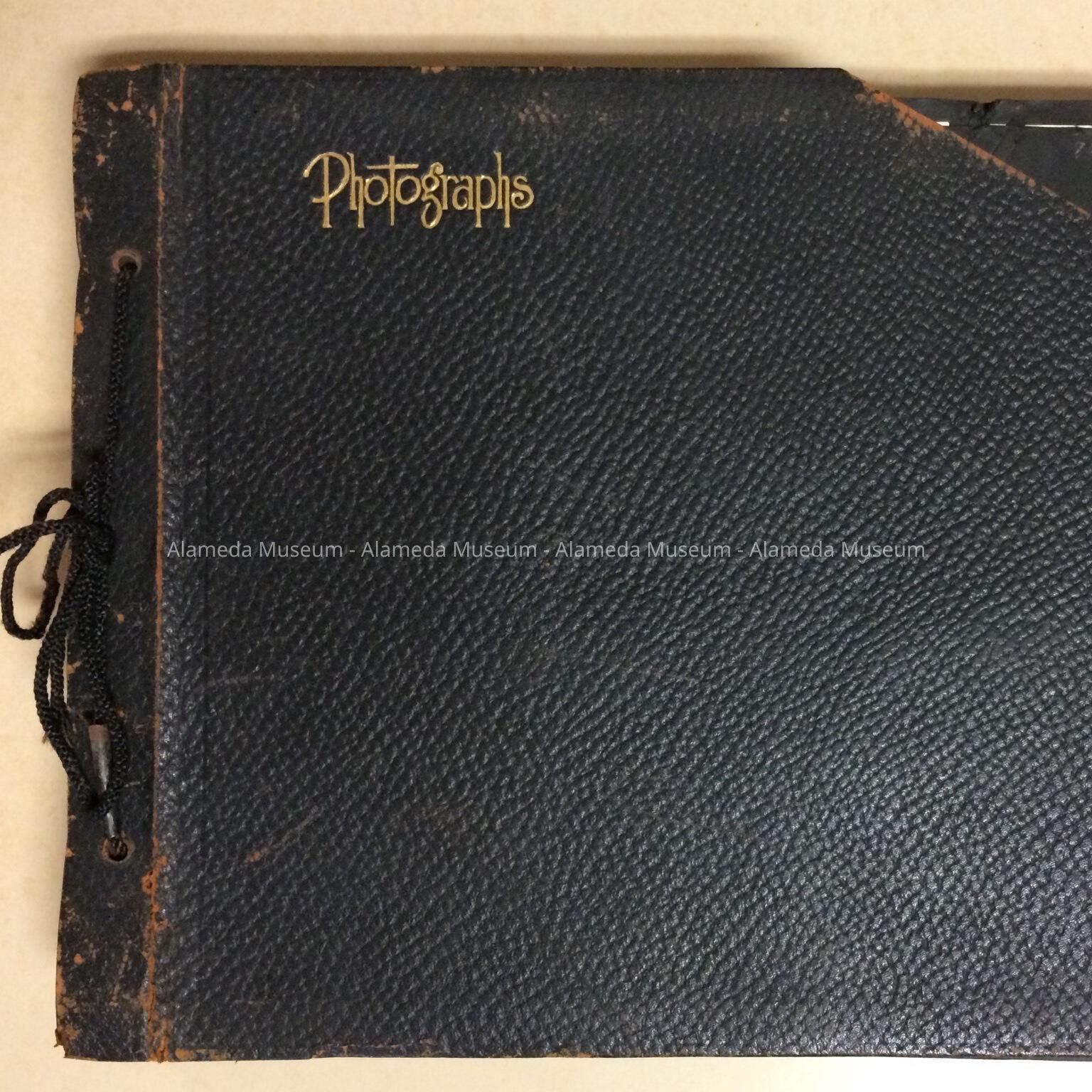 Description: Loose leaf album with soft cover in black leather, incised gold lettering "Photographs" (on cover).