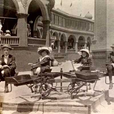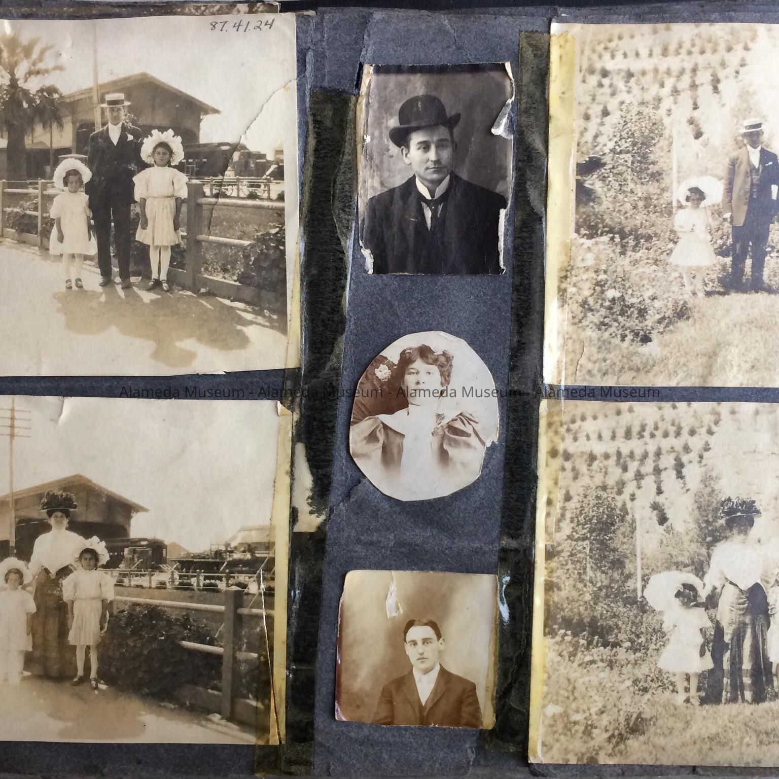 History of Object: Photo album of the John Peter Petry family, old-time residents of Alameda. In the back portion of the album are photos of what appears to be an old time Fourth of July parade (Park Street).
