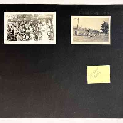 Description: Black & white, plus sepia tinted snap shot photos mounted on a black colored album page.