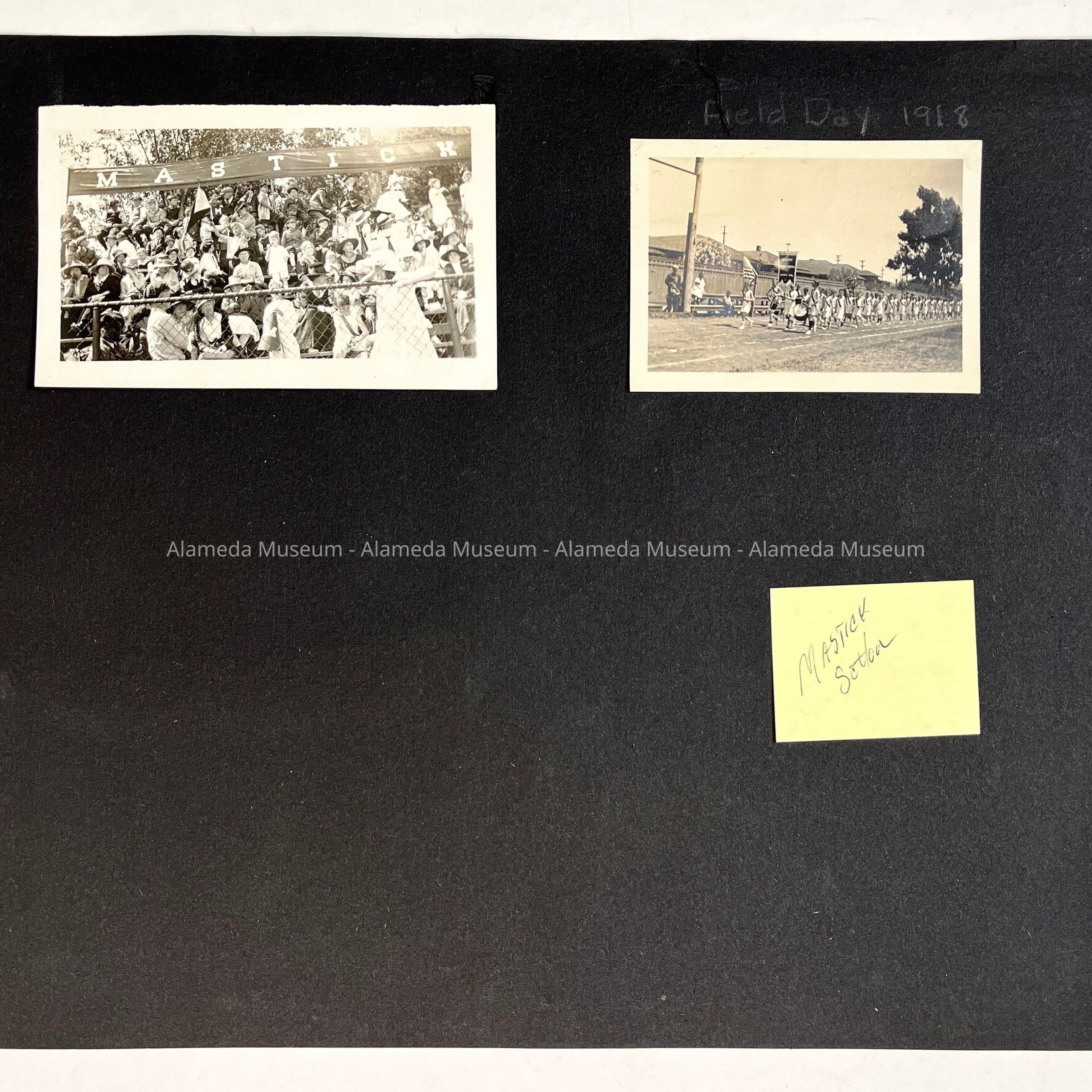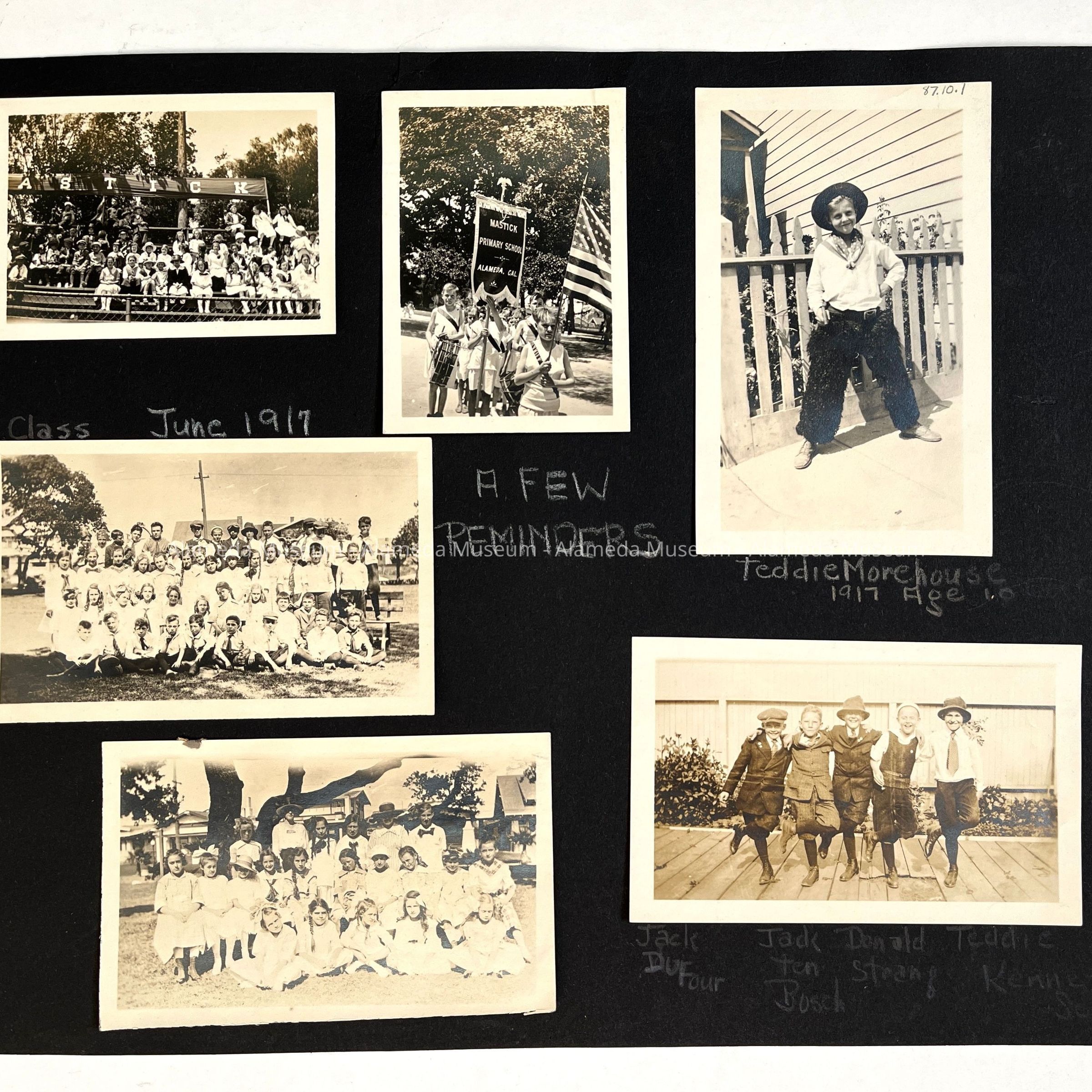 Page taken from a photograph album of the late Helen Norton, longtime teacher for the Alameda School Department. Photographs depict students of Mastick School, class of June-1917.