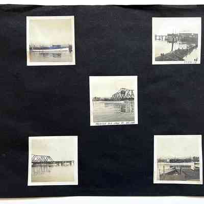 Photo Album page with photos of ferries, ships and a bridge, early 1900sEntry/Object ID