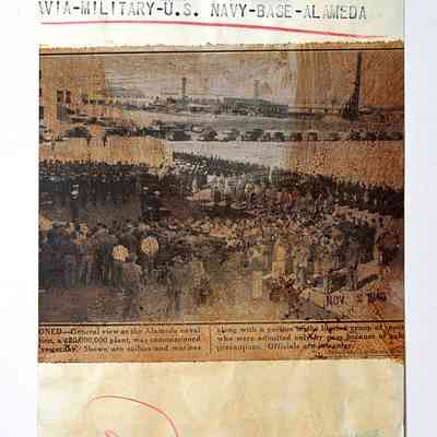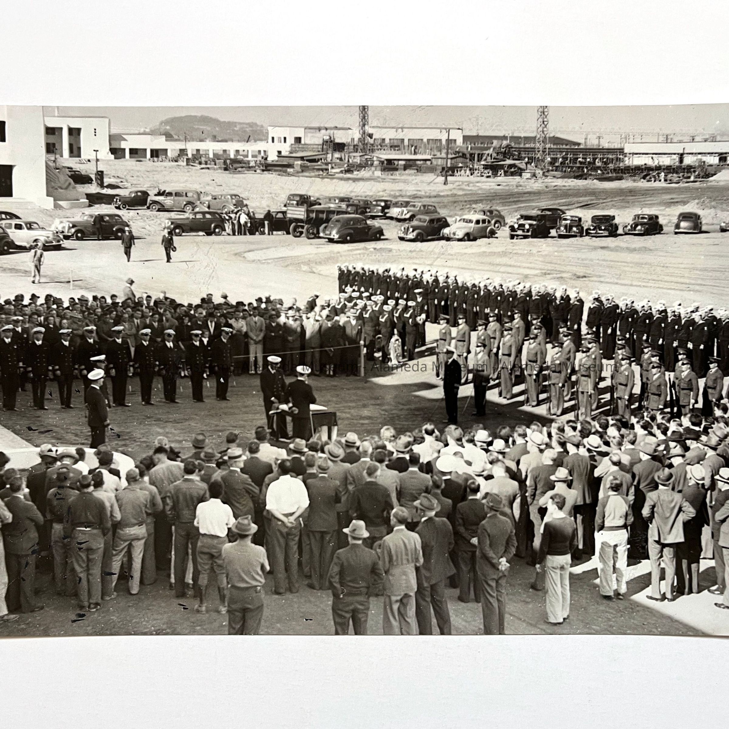 History of Object: View of the dedication and commissioning of buildings at the Naval Air Station, photographed and illustrated in the San Francisco Examiner dated Nov. 2, 1940.