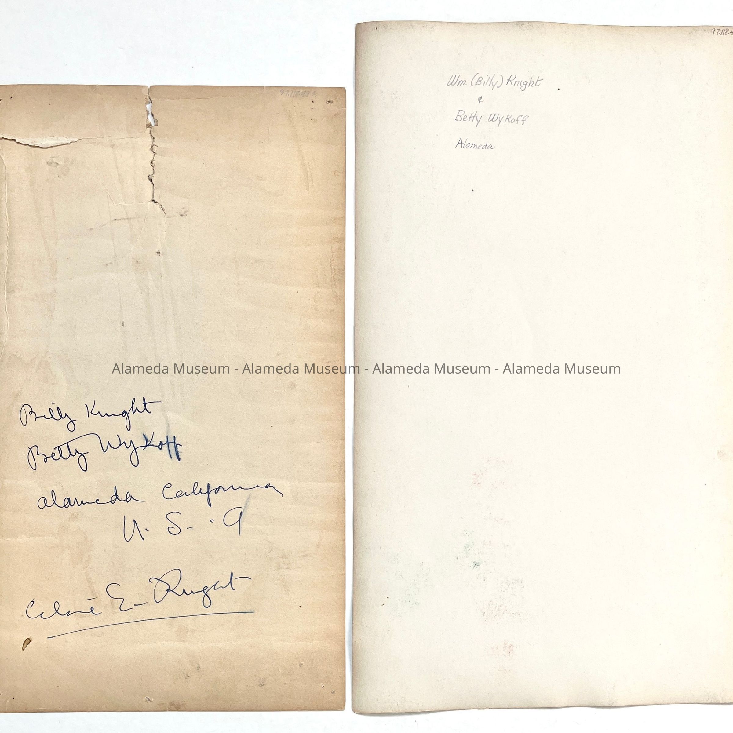 Photo and copy thereof of William Knight and Betty Wykoff, c. 1920Entry/Object ID