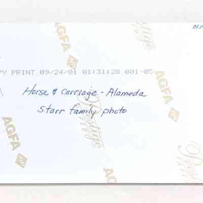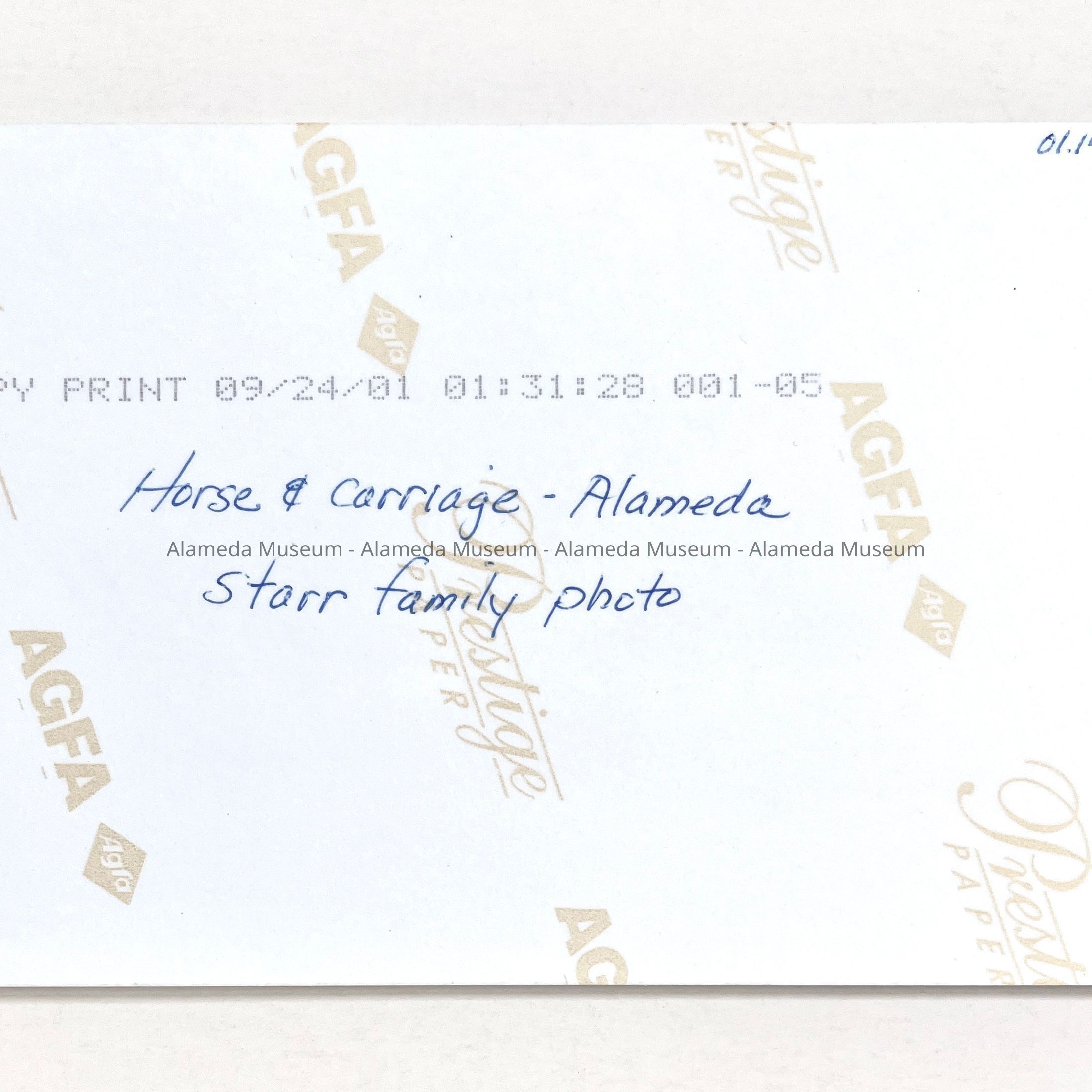 B. ORIGINAL NEGATIVE OF SNAPSHOT PHOTOGRAPH, PRINT DATED SEPTEMBER 24, 2001, OF A HORSE AND BUGGY ON AN UNPAVED STREET.