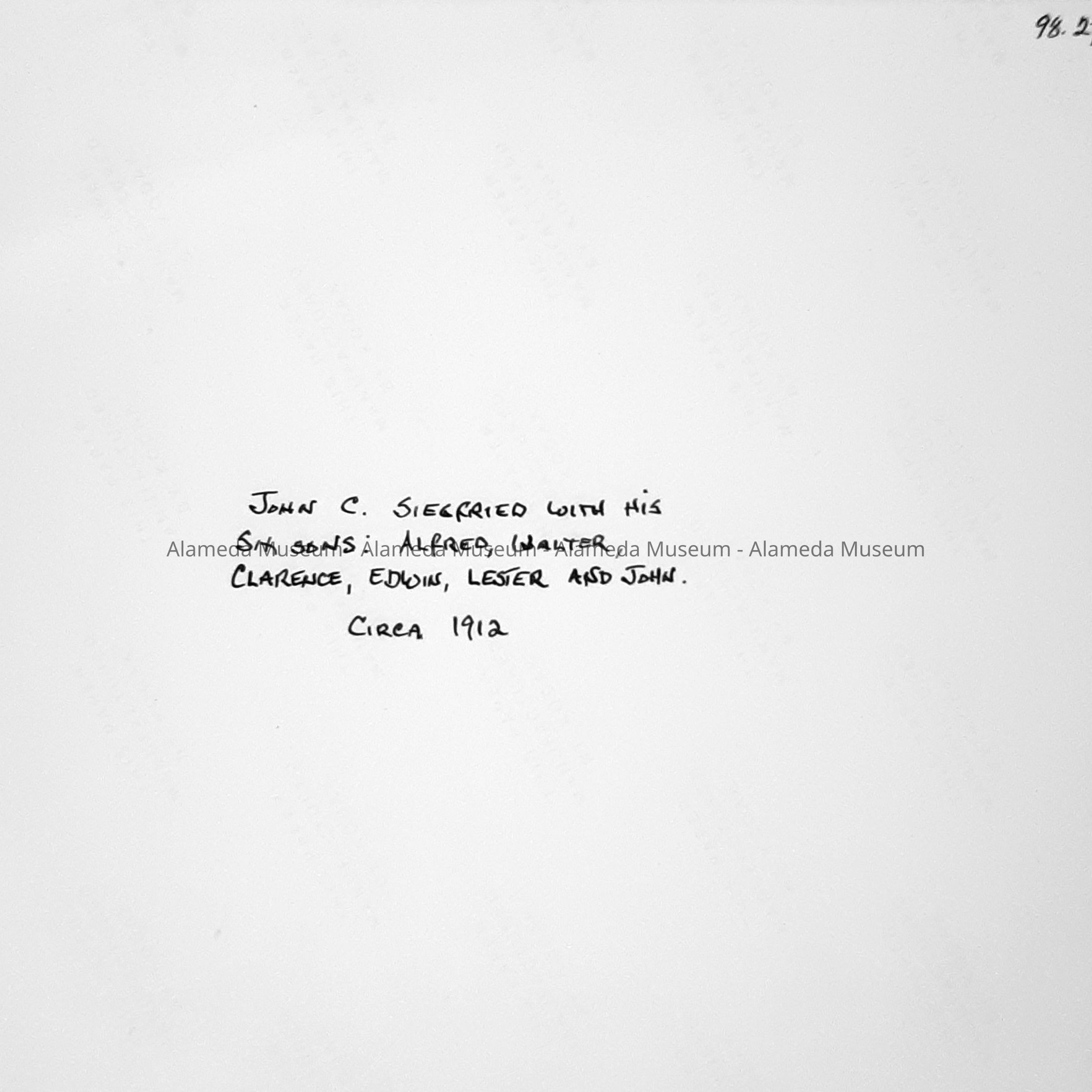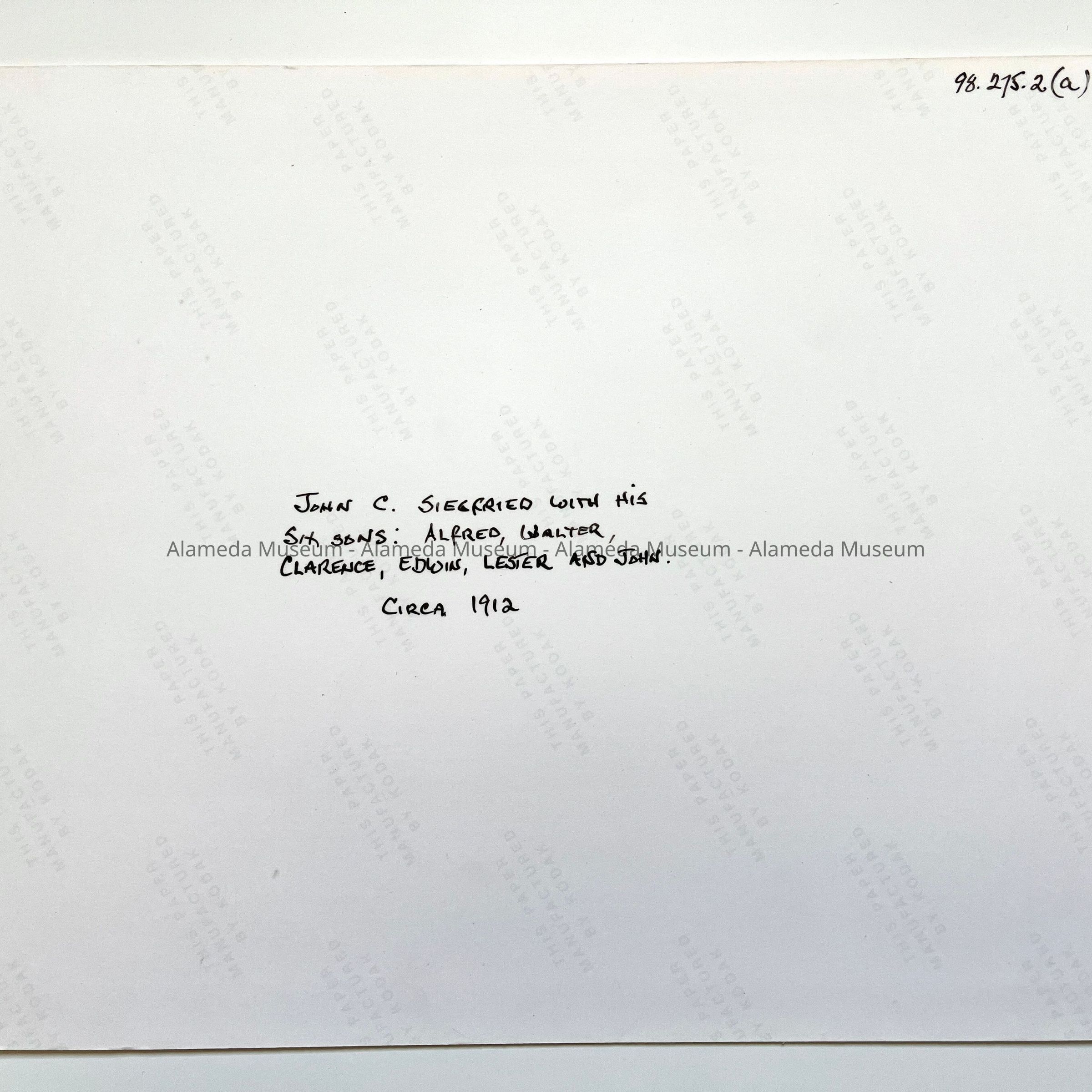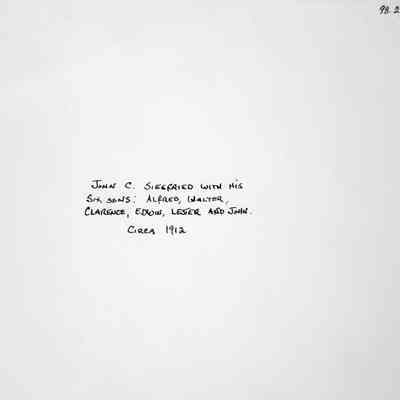 History of Object: John C.Siegfried with his six sons: Alfred, Walter, Clarence, Edwin (the artist), Lester and John.