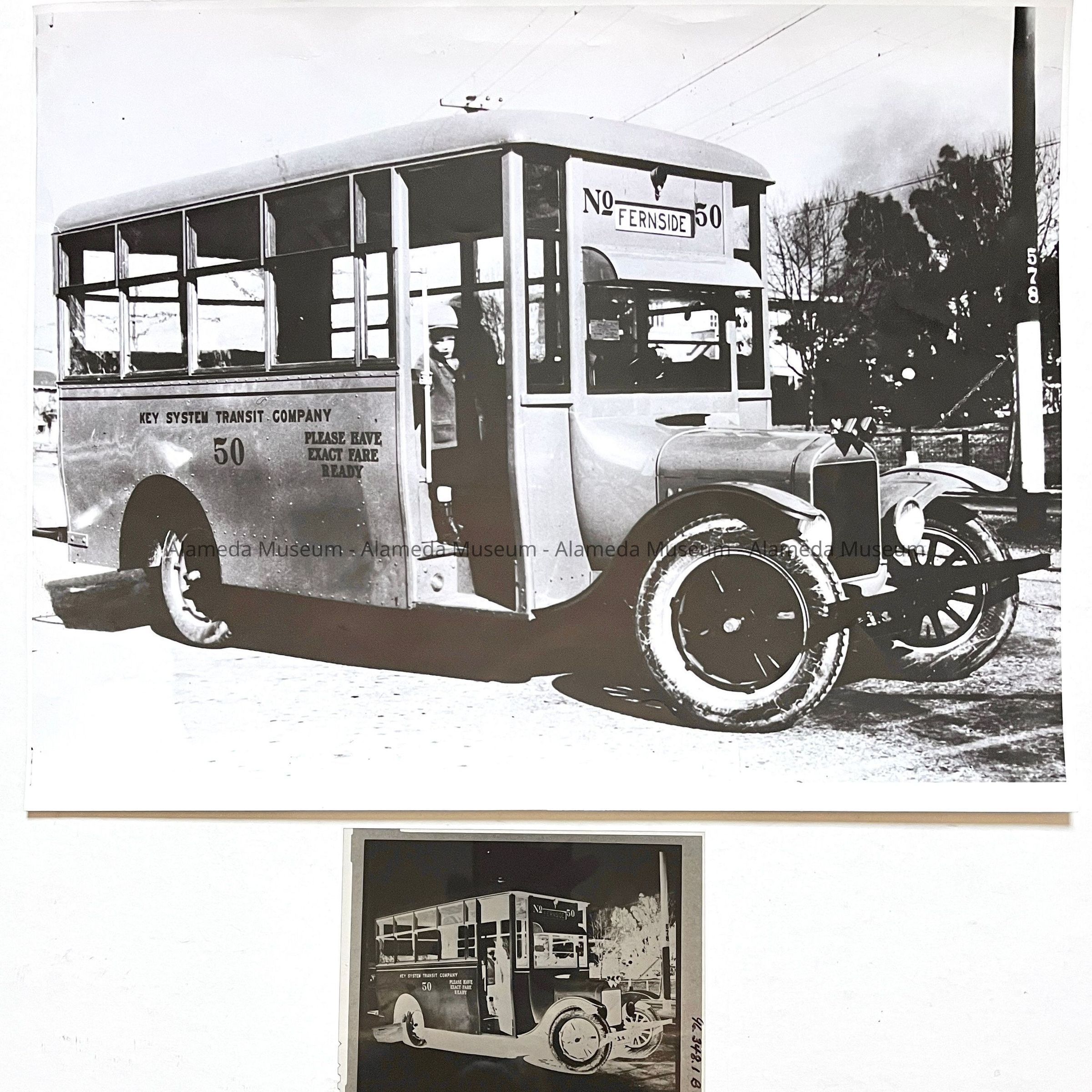 Photo and negative of Key System Transport Co. #50 Bus, 1920sEntry/Object ID