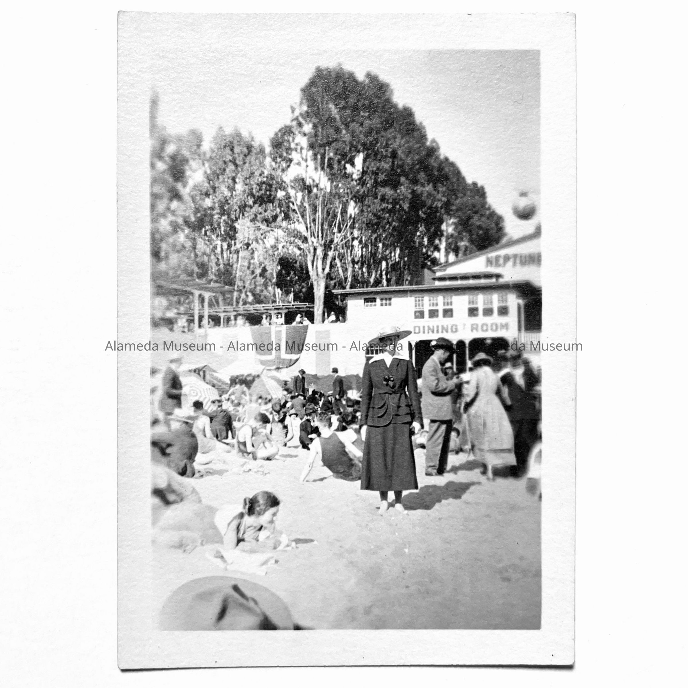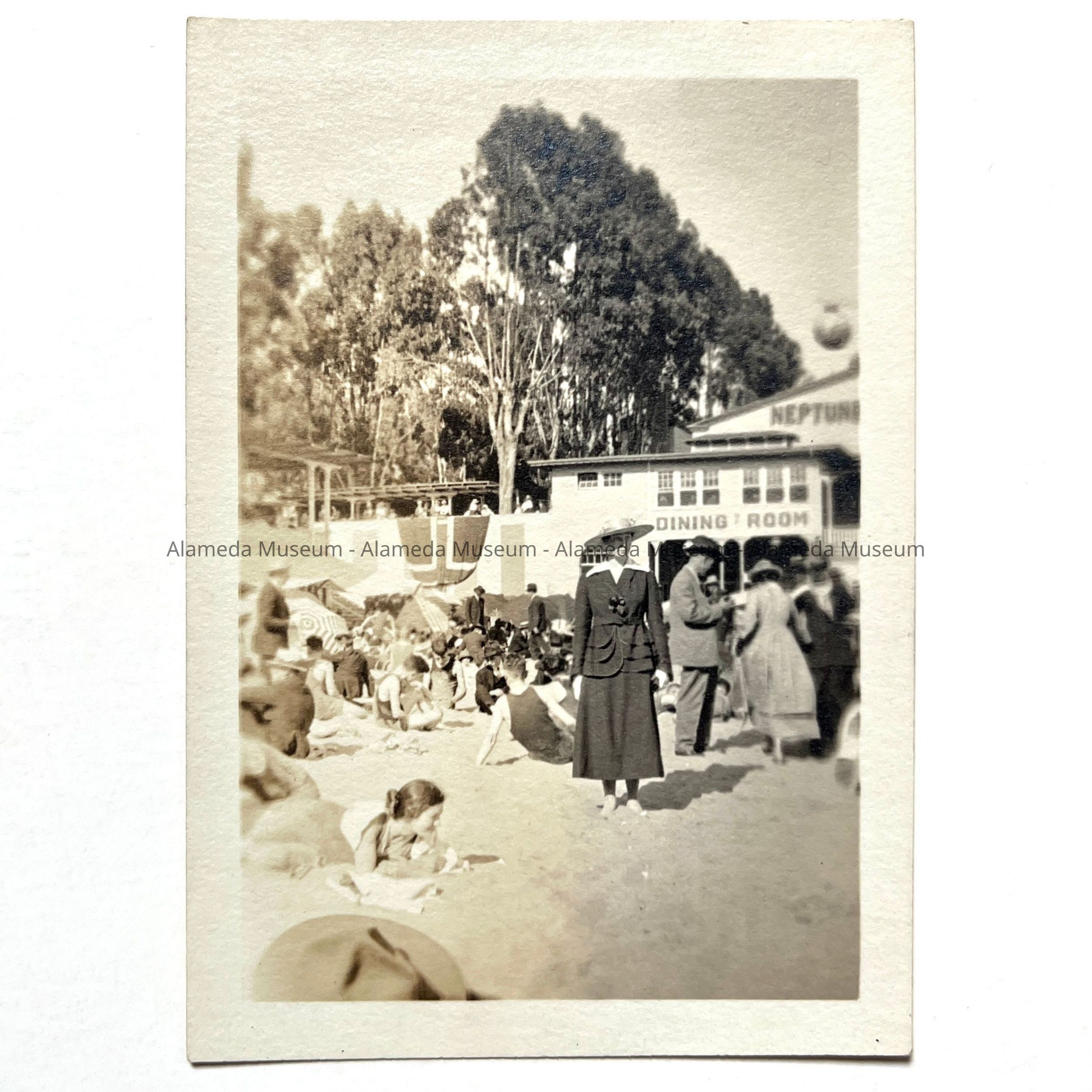 Photo and negative, sunbathers and main building, Neptune Beach, c. 1920sEntry/Object ID