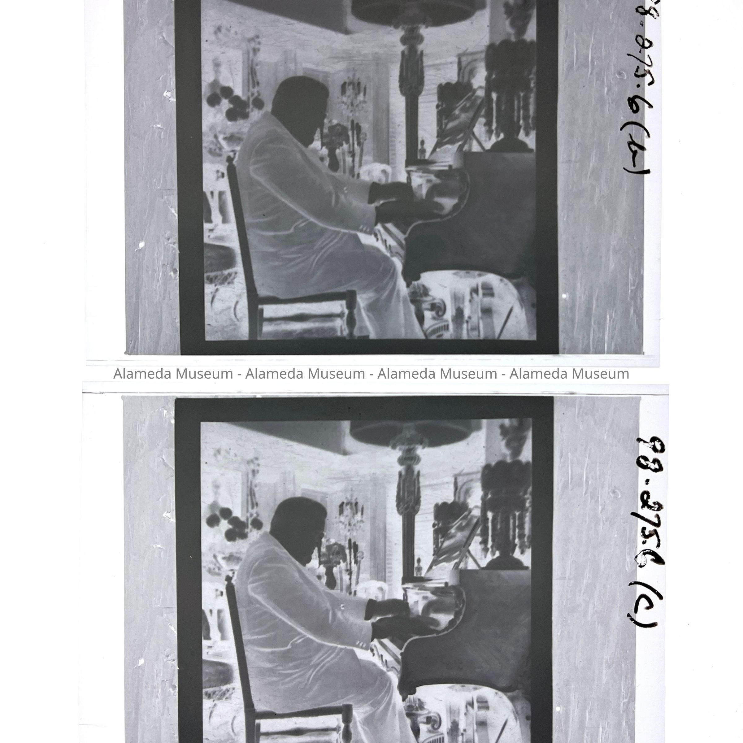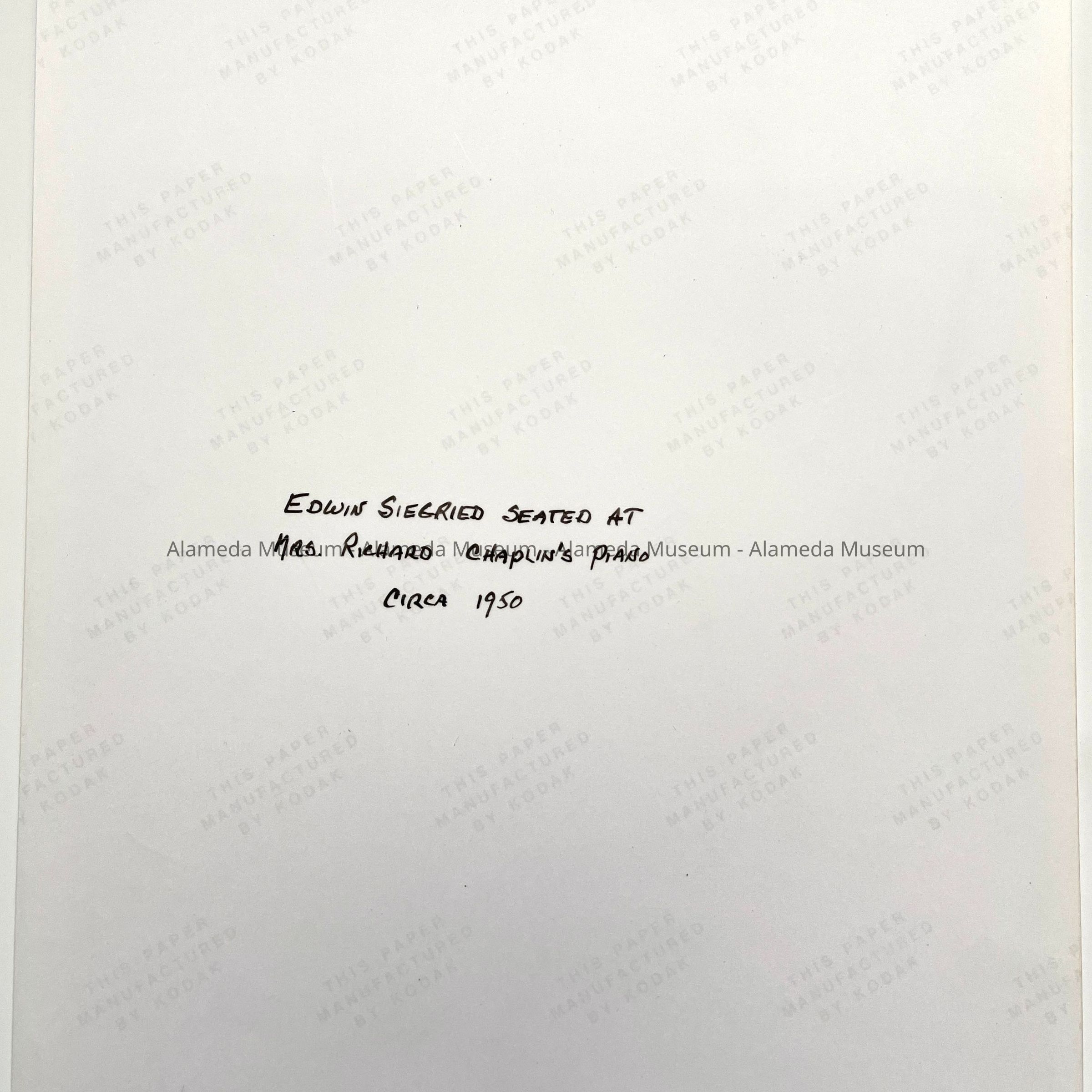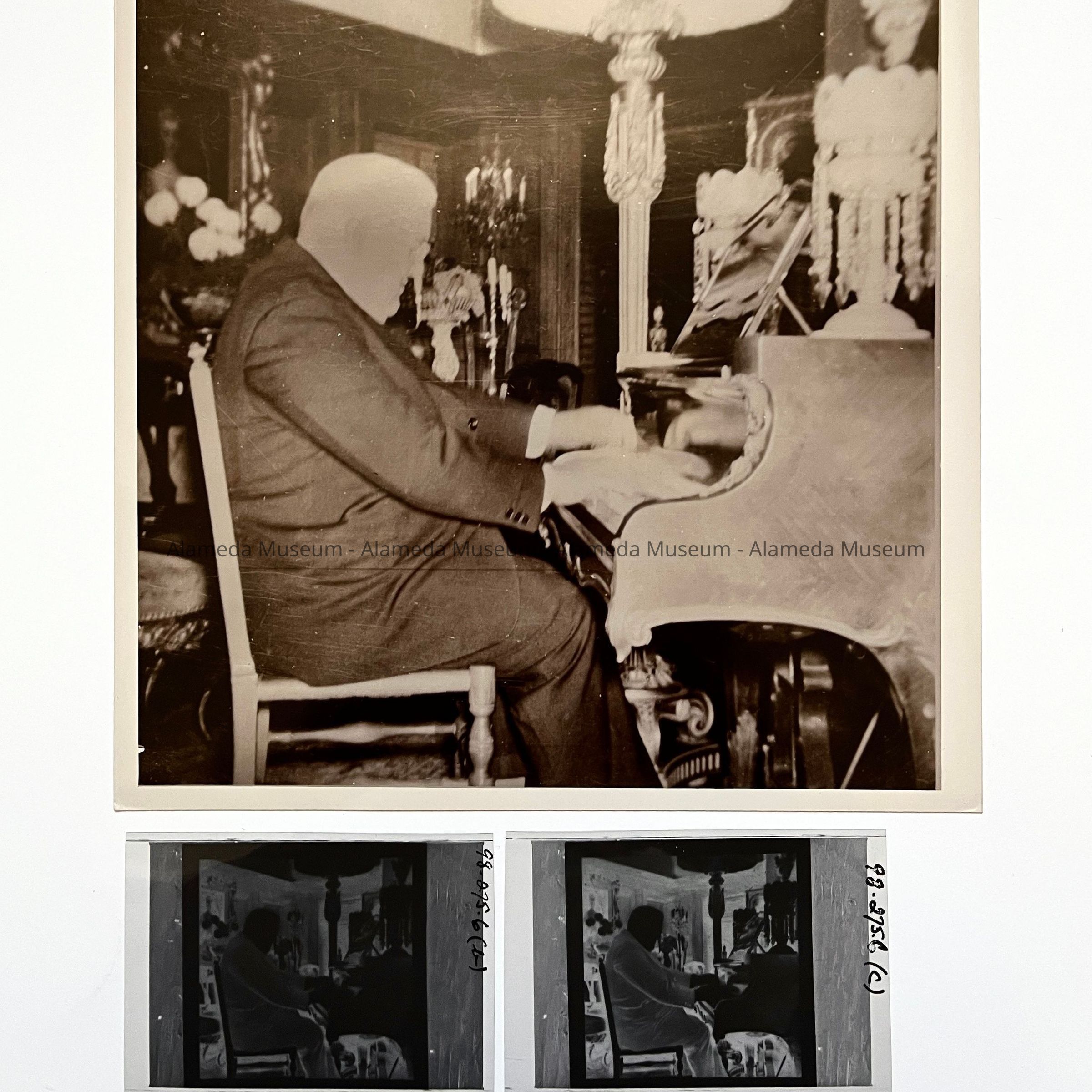 Photo and negatives of Edwin Siegfried at Mrs. Chaplin's piano, c. 1950Entry/Object ID