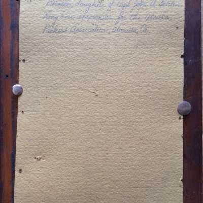 Description: Sepia tinted photo on mounting (light brown), signed "Hartsook", in what appears to be a frame constructed of cherrywood. At the top and bottom of the frame are loops for hanging, so when mounted the picture would not sway. The picture was most likely hung aboard a ship, as its original owner was a Captain for the Alaska Packers Association, Alameda, Ca.