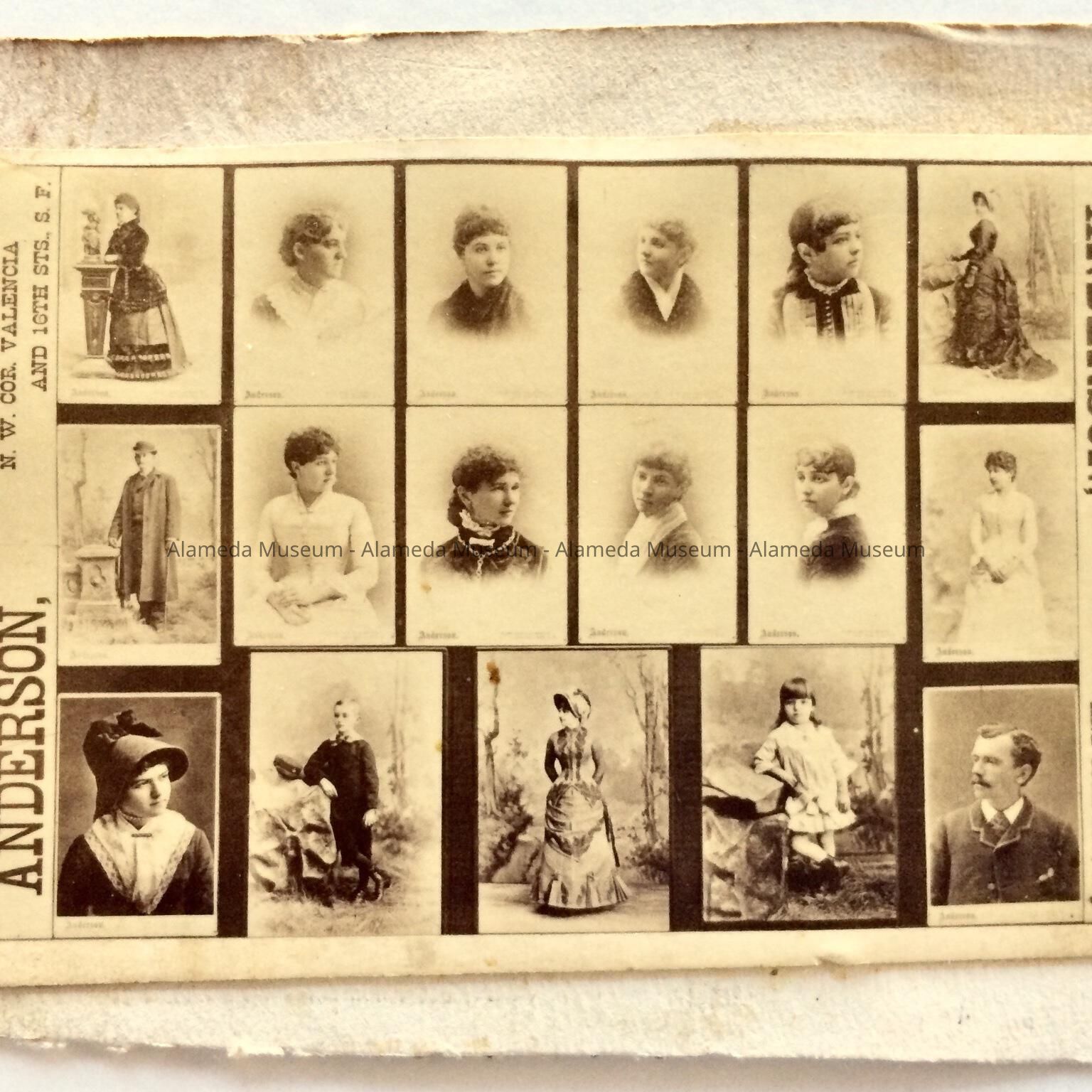 A PHOTOGRAPHIC BUSINESS CARD ADVERTISING THE PHOTOGRAPHER'S STUDIO, "HUGH ANDERSON, SAN FRANCISCO." MR ANDERSON LIVED AND OWNED PROPERTY AT 1313 AND 1315 MOUND STREET, ALAMEDA.