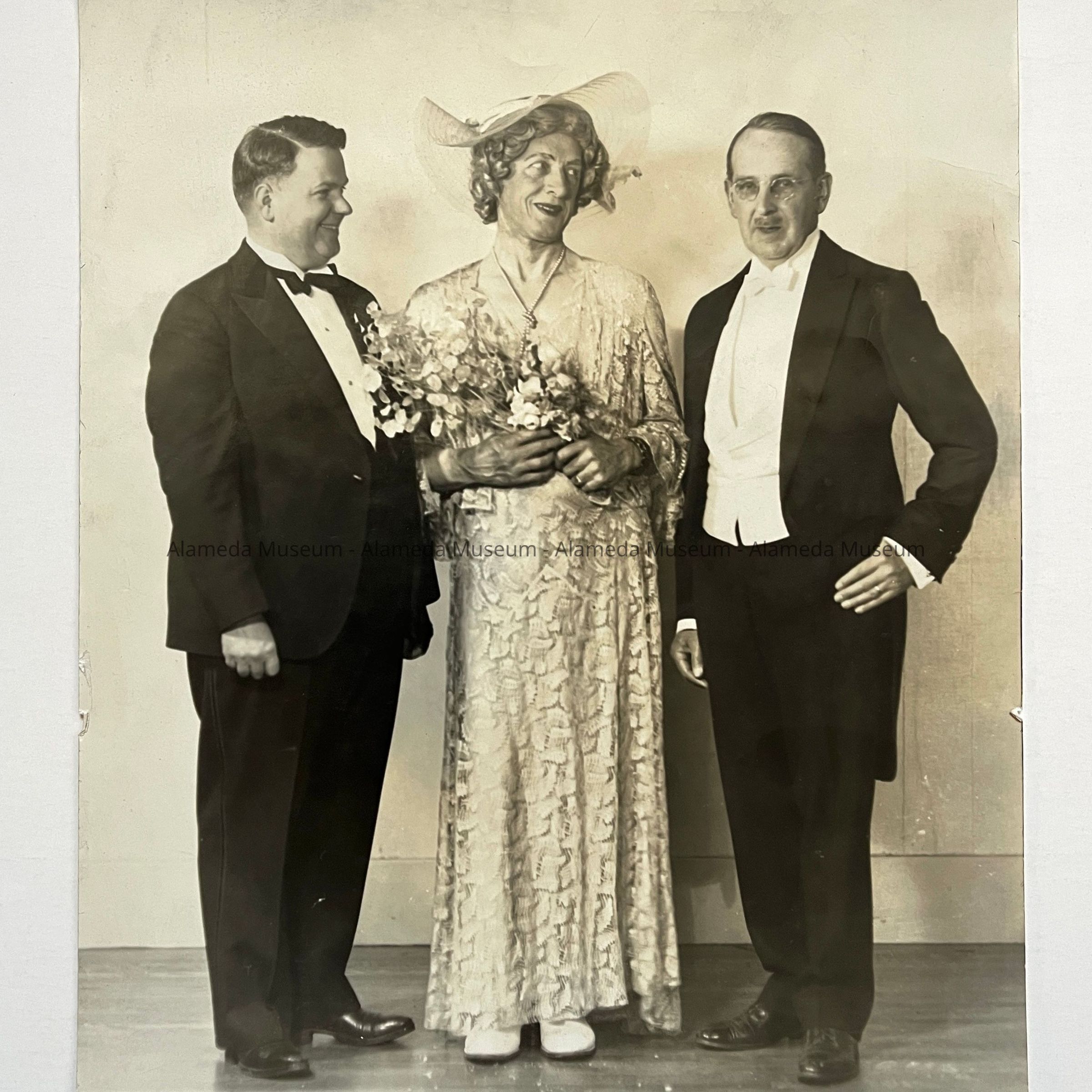 History of Object: Photo of the chief cast of the Elks Club play "Charlies Aunt", circa 1930. Left: S. Chesley Anderson Center: Christian J. Klitgaard (father of donor) Right: Augustus Keane