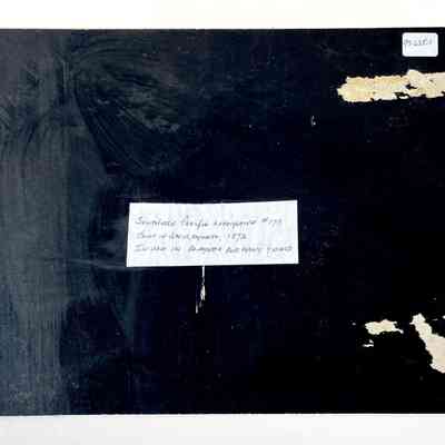Description: Modern black/white photocopy of a vintage image, mounted on black paperboard, Incorporated into the photocopy is a typed description label affixed to the upper right corner of the original image. The original photographer is unknown.